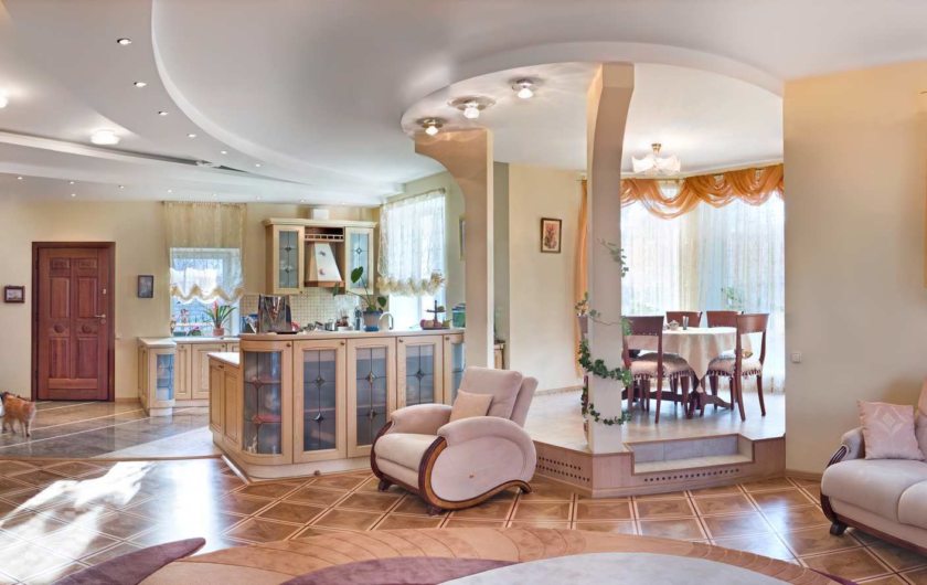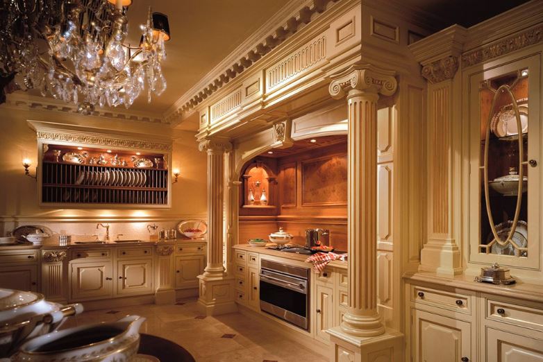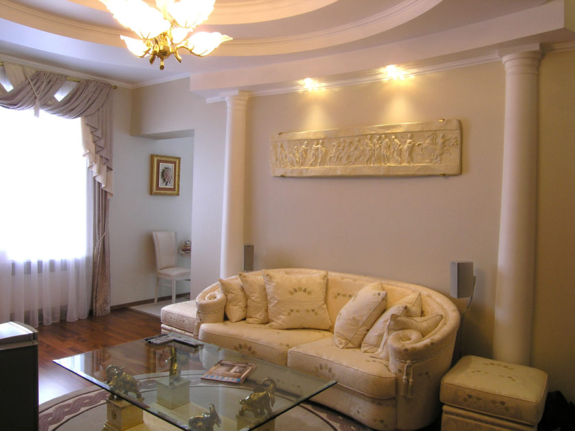 In the era of antiquity, people preferred high ceilings and spacious halls. Therefore, their style is well suited specifically for large rooms. In small rooms it is perceived as too bulky, heavy.