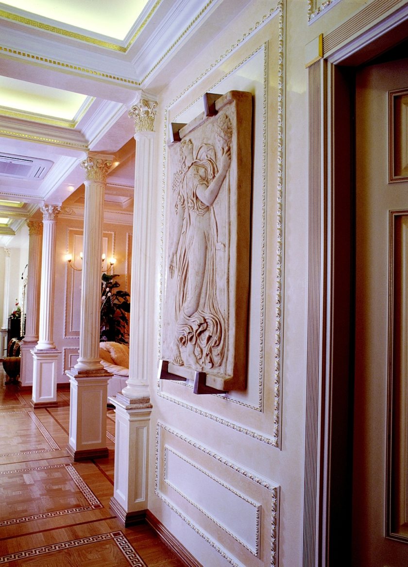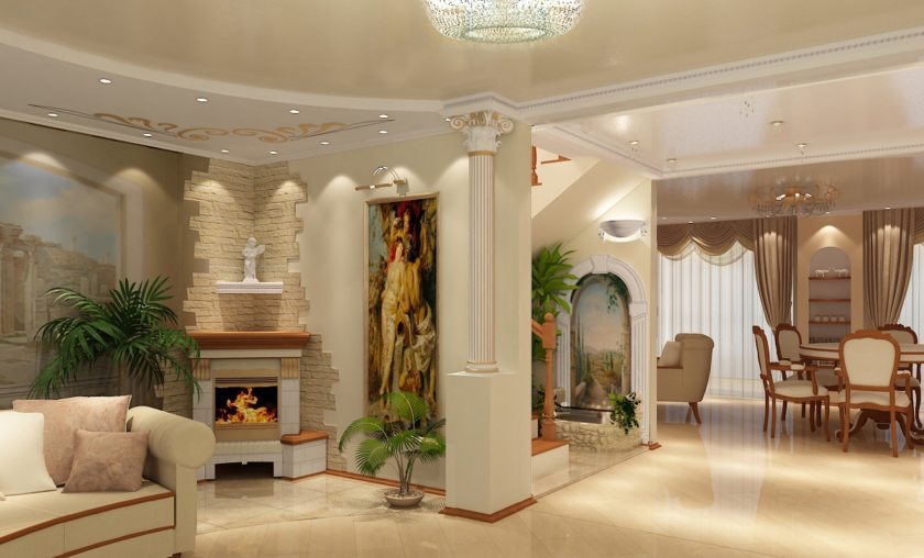 The ancient Greeks and Romans used sculpture to decorate their homes and cities. And they succeeded very much in this, having formed a whole system of voluminous details molded of stone, clay or wood. This includes columns, porticoes, cornices, pilasters, stucco on the walls and much more. Thanks to the use of all these things in the interior of ancient style it is interesting to be looking at the decor of the room.
