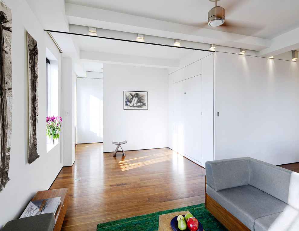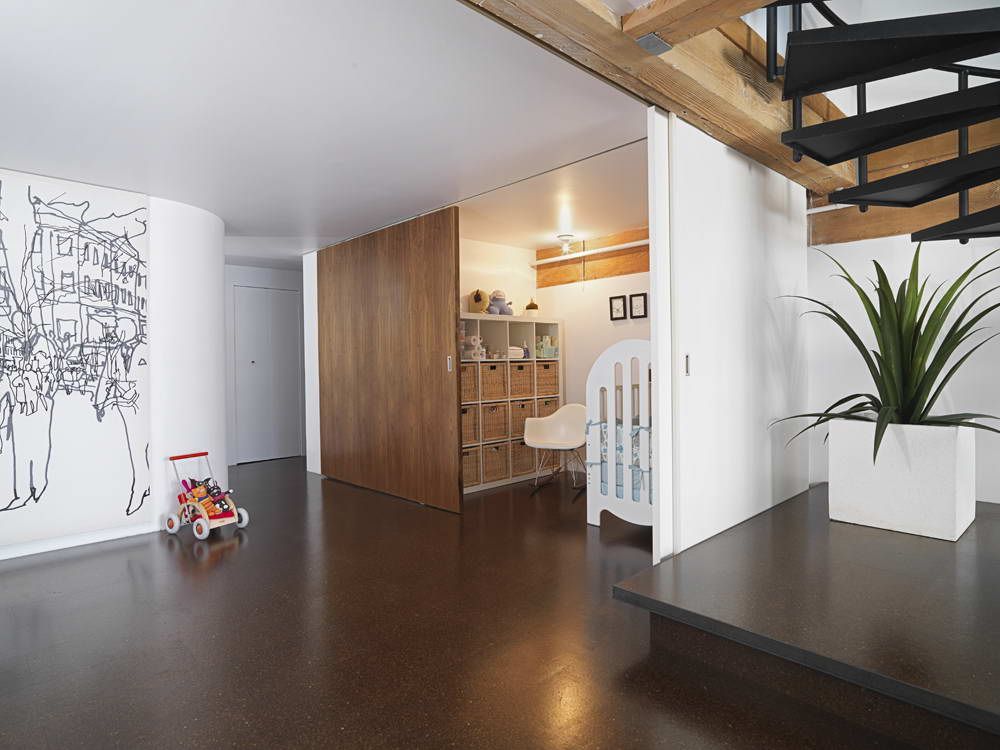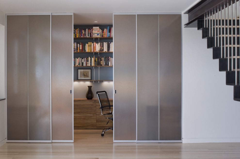 Unusual sliding partition from bookcases