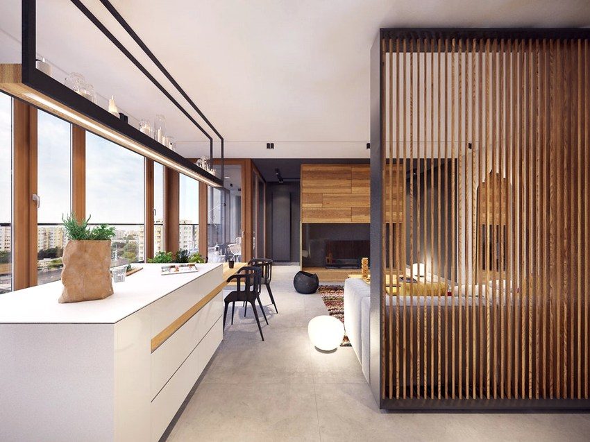 Rational use of the area is the basic principle of arranging the interior of any room. This approach allows you to make small rooms more spacious, large - more comfortable. To divide the space, designers use various techniques, tools. One of the most effective methods of separation is a decorative partition. It is made of various materials, performs several practical functions at once. This publication discusses the features of the use of decorative partitions for zoning in the apartment.
