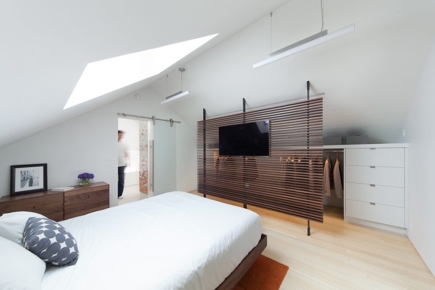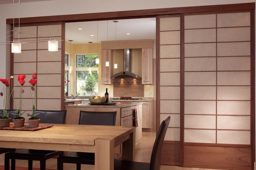In modern styles, functional decorative partitions are usually used. They are sliding, swivel. The principle of their work is simple. It is based on the principle of sliding wardrobes. For the installation of such partitions, rollers, rails, various mechanisms are used.