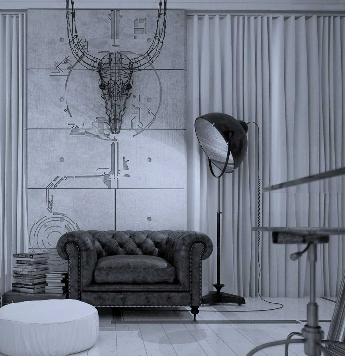 Room interior in gray