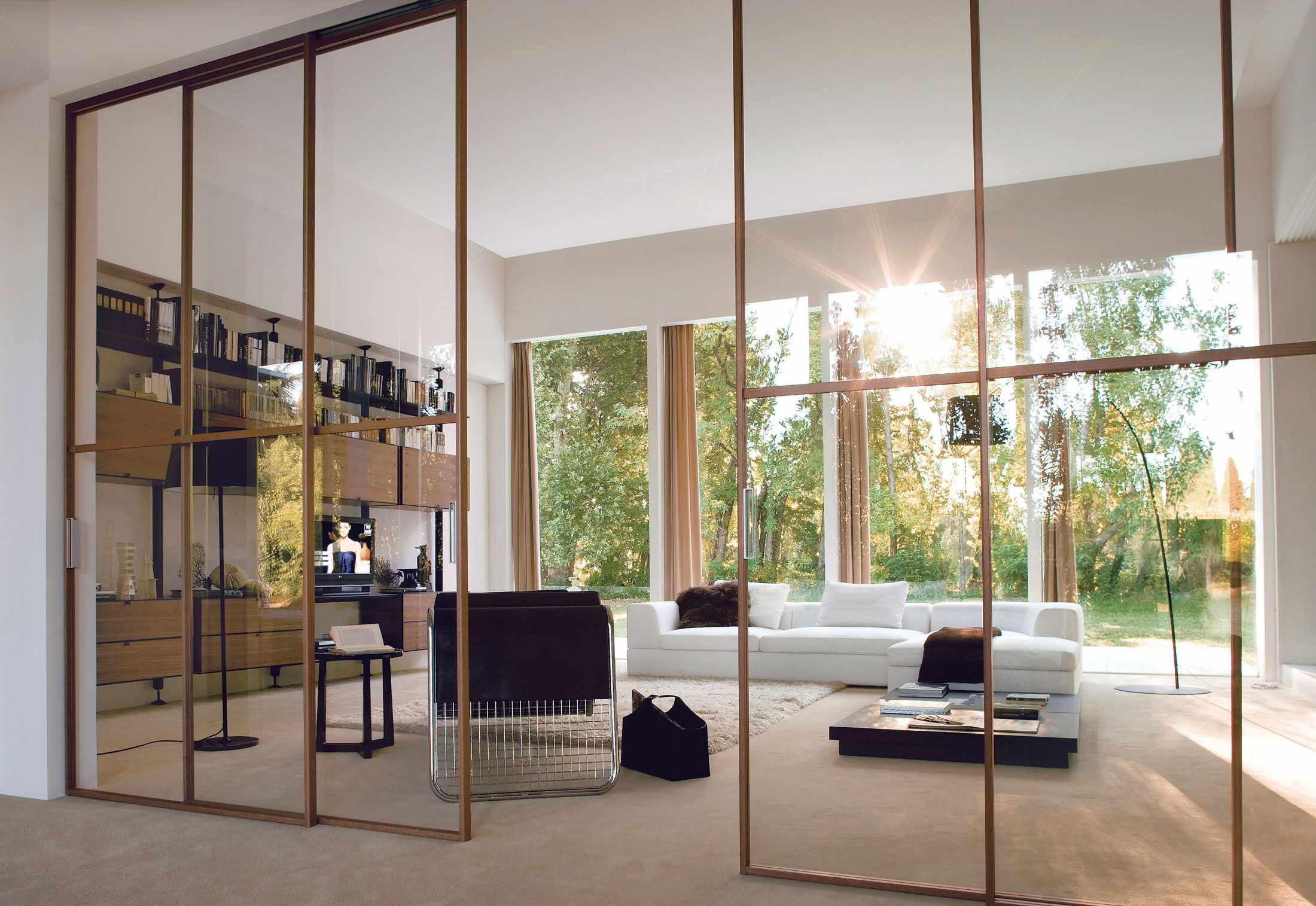 It is not recommended to install glass partitions in living rooms.