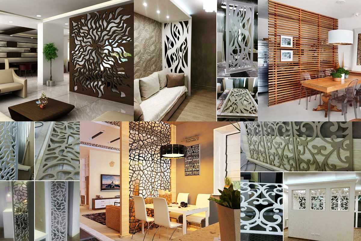 Light beautiful partitions in the interior are the same piers, only in a shortened or lightened version. Using decorative panels or glass walls, the conditional distribution of living space is drawn up to separate the functional areas. On the other hand, it’s easier to distinguish between personal space in a large room or a house without walls, using them as a spectacular decor.