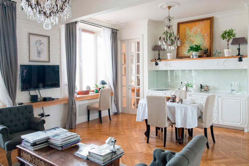 Most often, they met two-room or three-room apartments with high ceilings and huge windows.