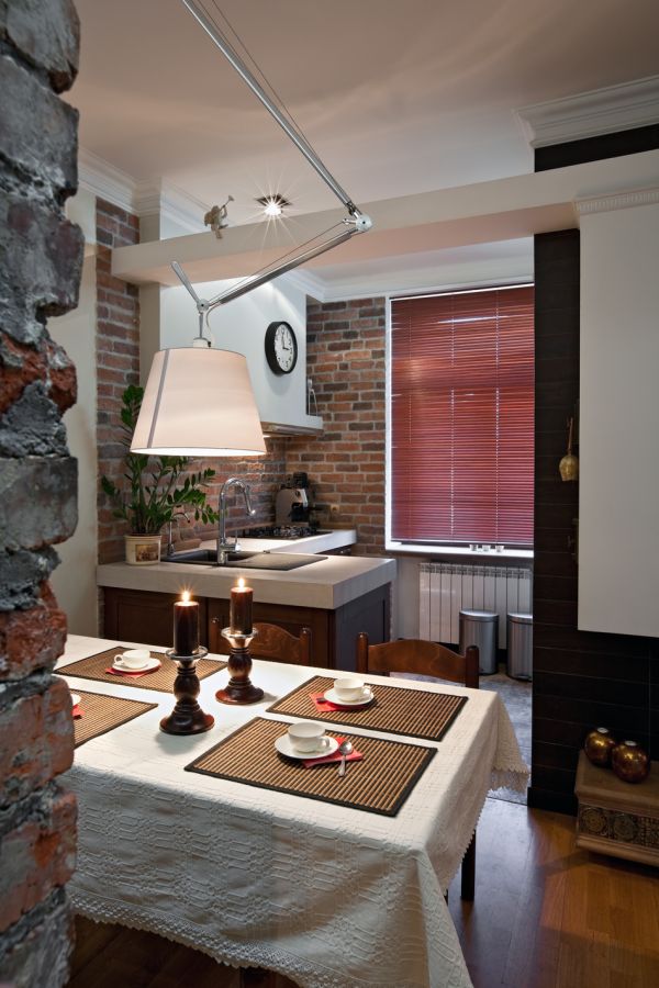 Small kitchens can easily be redeveloped by removing the wall in whole or in part. The interior of the kitchen in stalin can be performed without demolition of partitions. In this case, it is worth dividing the space into zones and allocating them using various floor coverings or plasterboard structures on the ceiling.