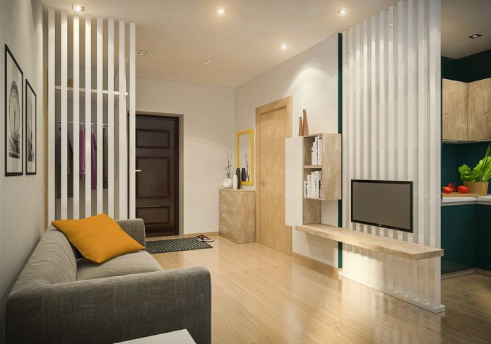 | Partitions | They allow you to create several rooms from one. Then you can divide the territory into different segments. But there may be a feeling of darkness, there will be less space. |