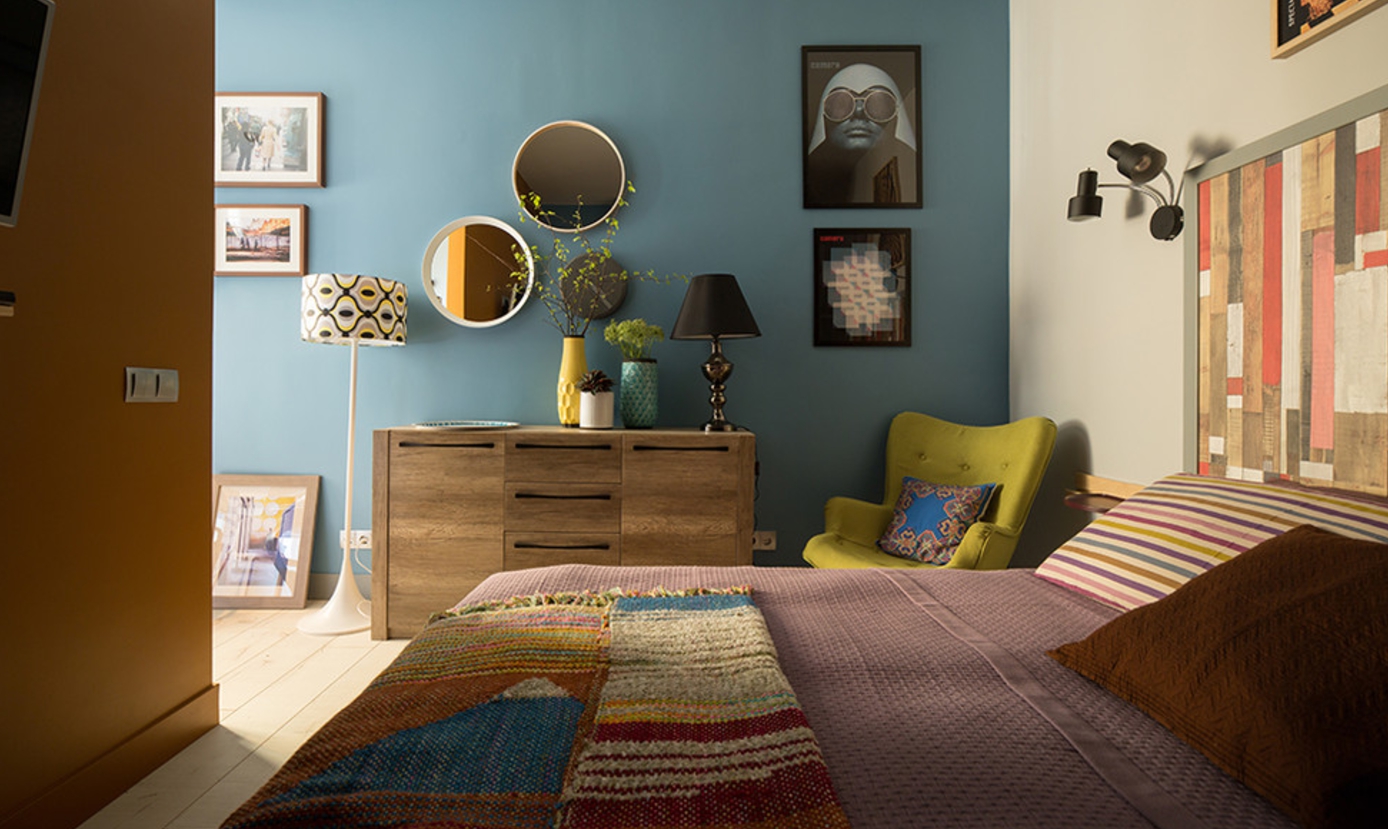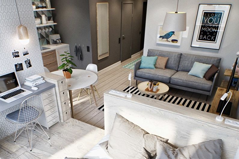 You can create a functional and bright interior, even in a small one-room apartment.