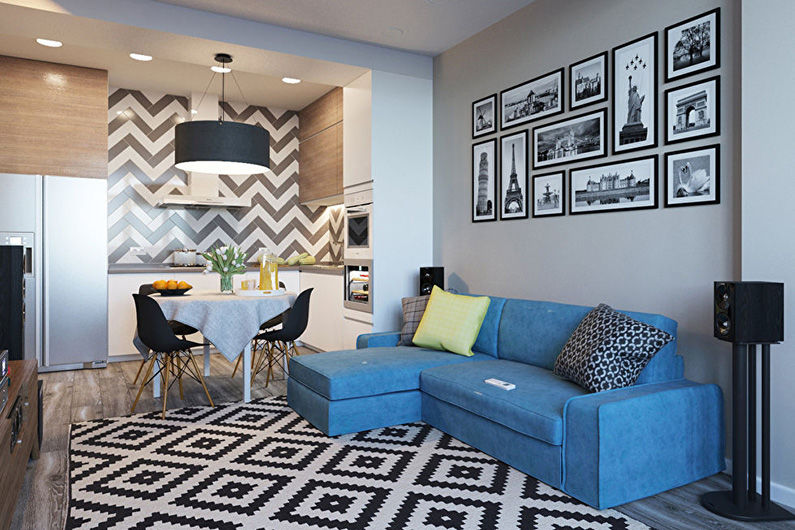 You can turn a studio apartment into a studio. To do this, dismantle the walls between the room and the kitchen. As a result, you get a spacious room that allows you to conveniently accommodate everything you need. It is recommended to think over zoning to select separate segments in the general space. You can use a different floor covering, make a diagonal opening in the living room. The result is a spacious studio. To avoid problems, such as the smell of food spreading during cooking, get a powerful hood.