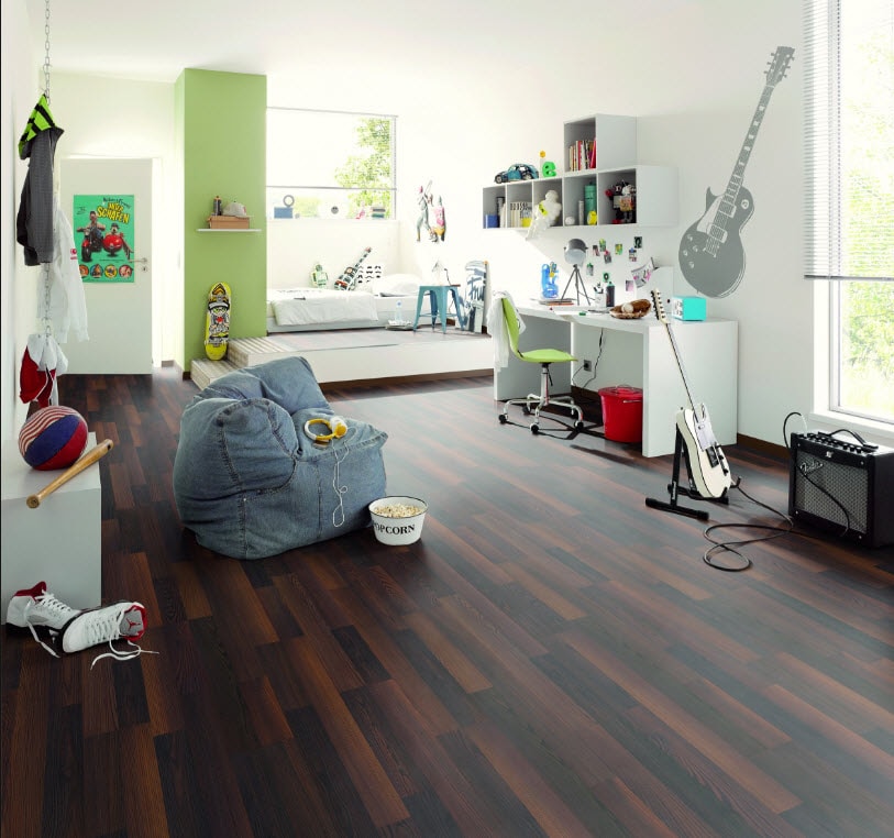In this category you can highlight the most popular areas - eco-style and chalet. For the first, a dark laminate is suitable. In combination with bright and rich shades on the walls, he will create the best combination for eco-style.