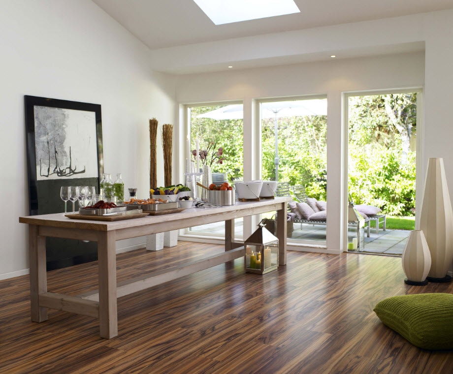 Also take into account another factor - the function of the room. If you choose a laminate for the kitchen, remember that this is the most used room. The floor here may be flooded with water or sticky substances. For this reason, pick up dark models, the texture of which will be quite large. Also carefully monitor the installation, it must be of high quality, so that in case of spilled water the coating does not deform. Now more about the selection of appearance.