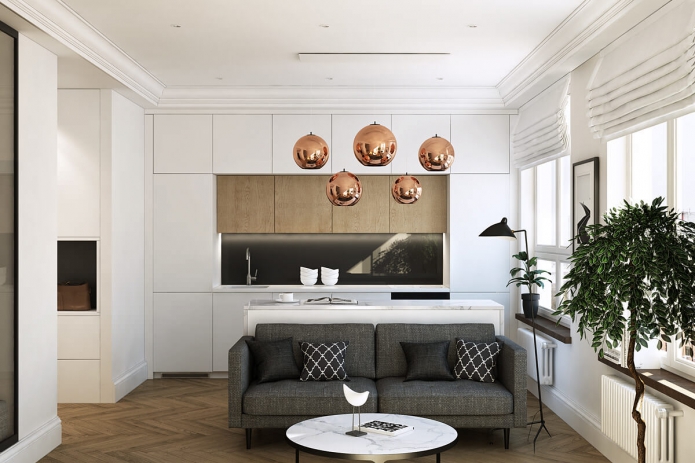 Do not underestimate the importance of lighting design. The right choice will not only save space and visually expand it, but also support the overall style of your small apartment.