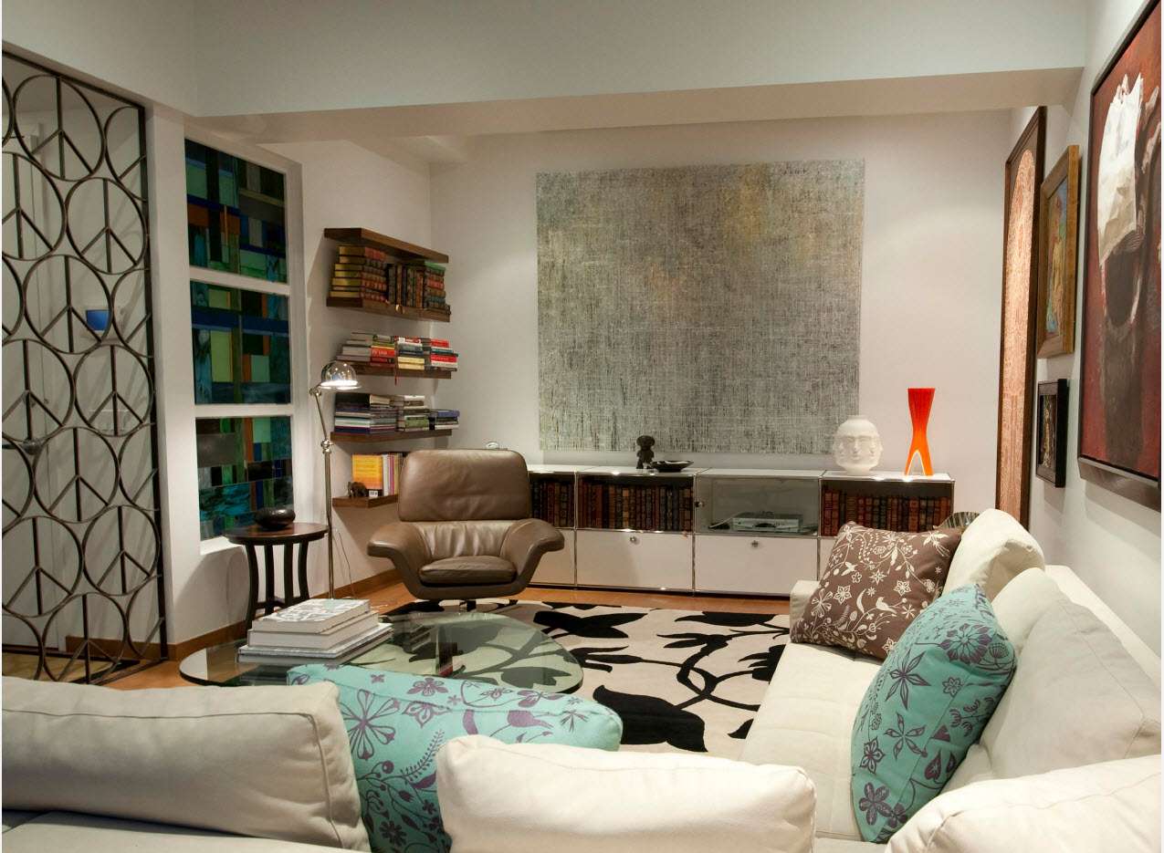 The use of home-made parts, including rugs, and hand-made lighting fixtures, should be minimized. Modernity requires the use of mirrors, glass, metal surfaces. Creation of installations will allow to realize a fashionable interior.