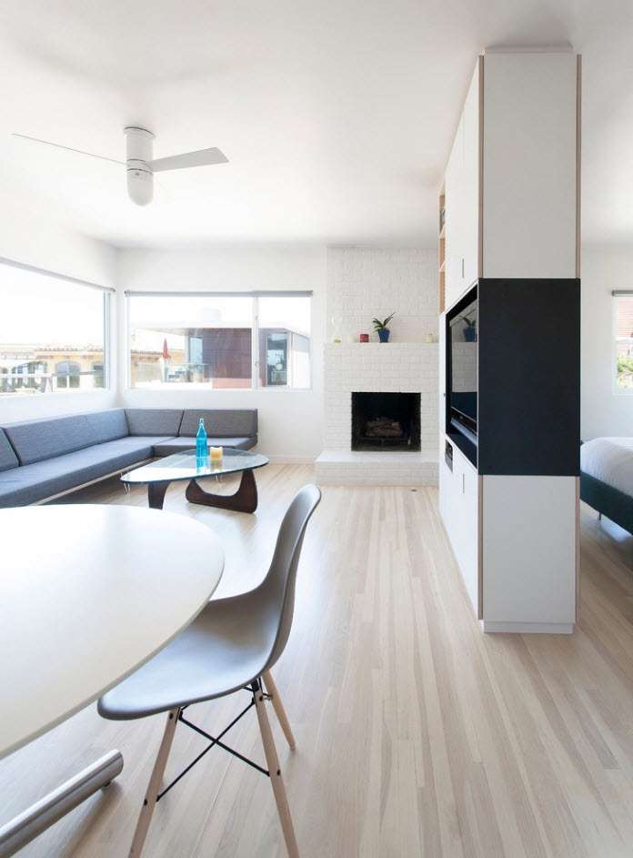 In a small space, some walls are often removed to expand it. You can remove the partition between the balcony and the room. They often remove the wall between the living room and the kitchen, creating a studio. You can divide the room into zones with the help of colors and various materials.