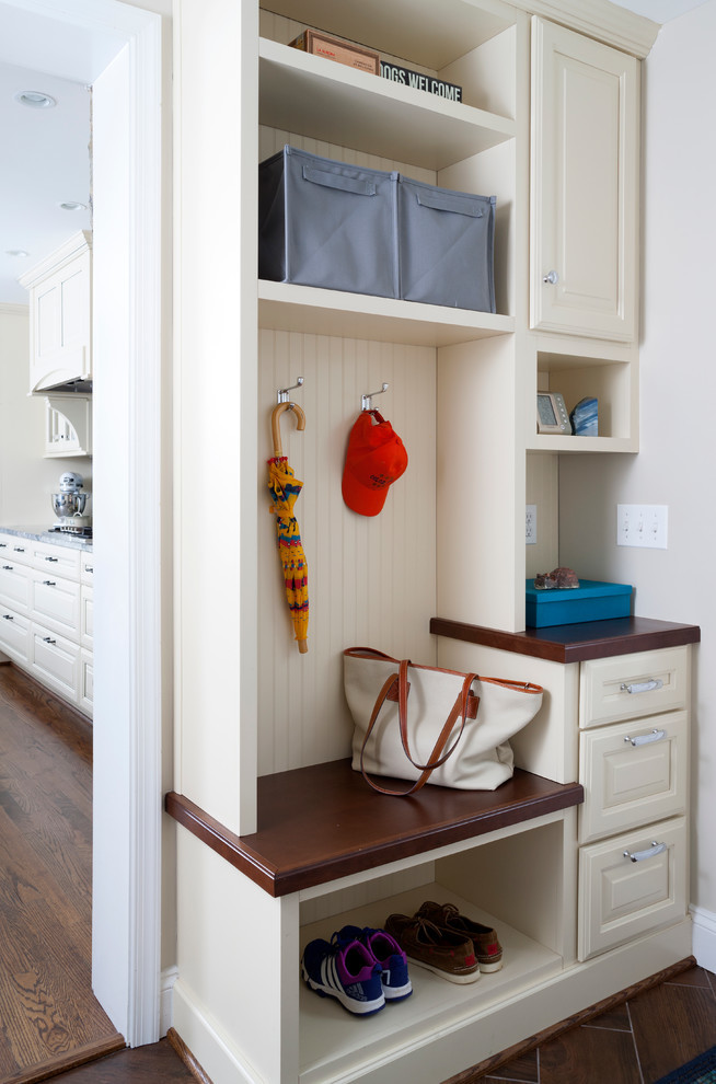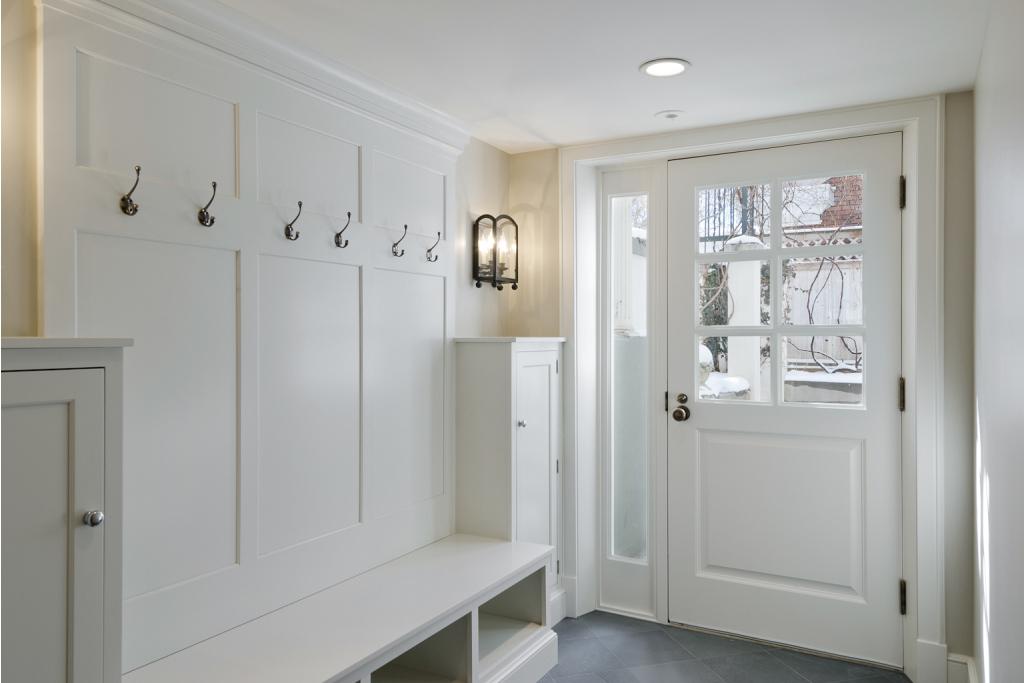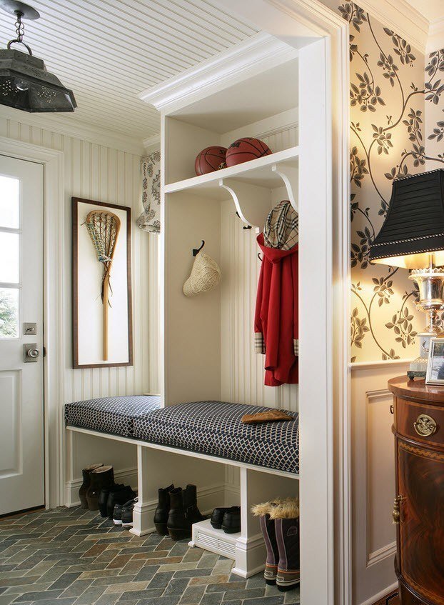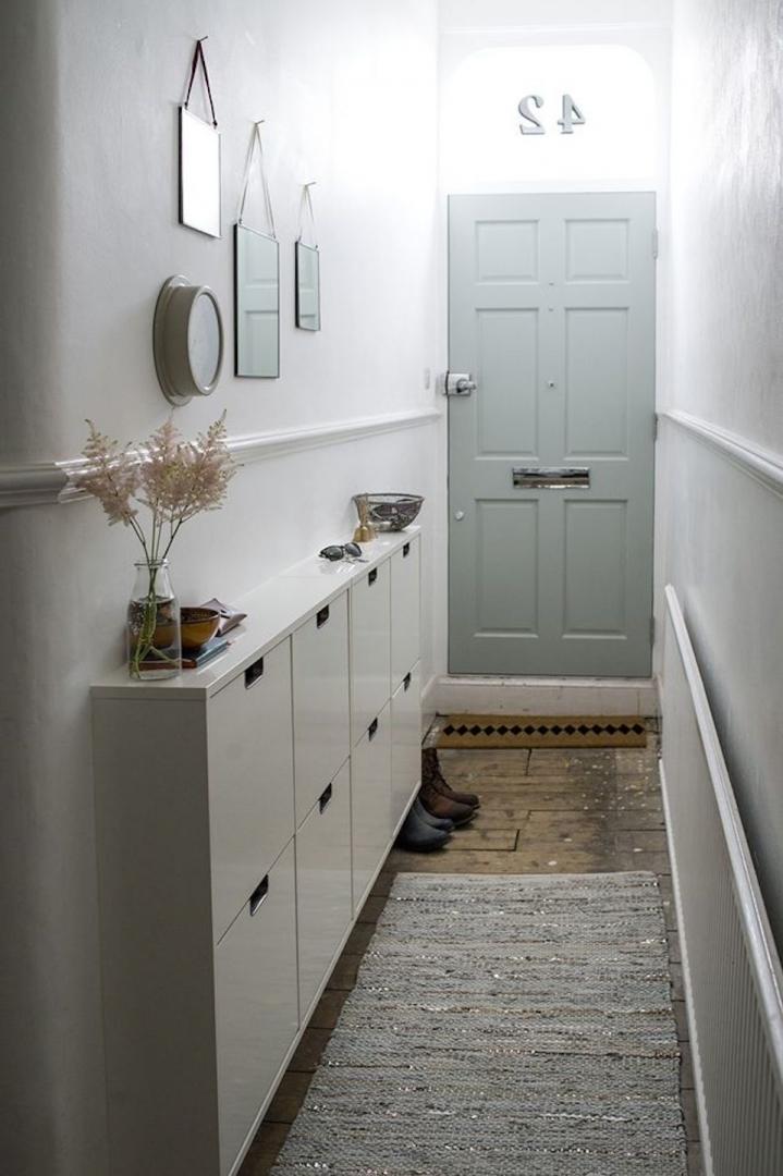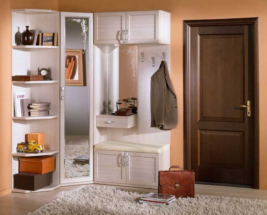 The storage system in the hallway should consist of at least three compartments: for hats, for clothes and for shoes