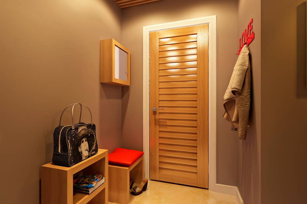 A small entrance hall is not a reason to unconditionally refuse bright saturated colors. They may be present in accessories and decorative elements.