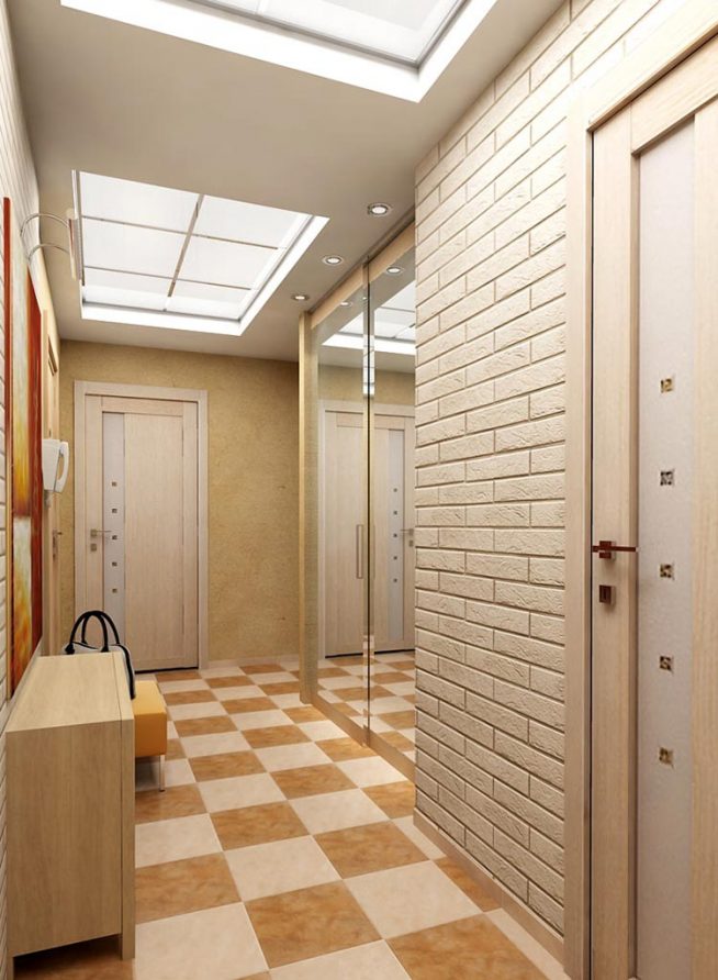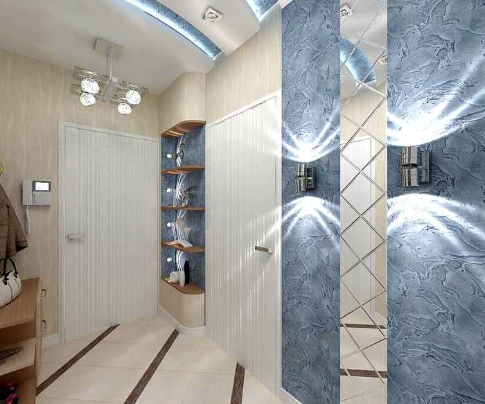 A huge selection of cladding materials, combined with mirrors and original lighting - great opportunities to create a special design of a small hallway in an apartment in a panel house. At the same time, large costs for facing materials are not expected at all. On the other hand, such savings make it possible to afford expensive decorative inserts.