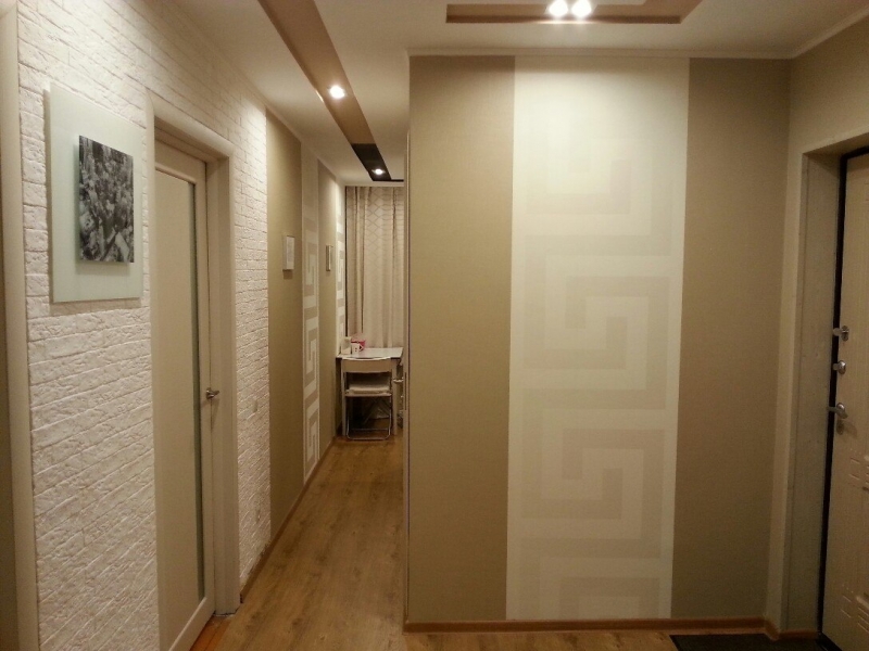 If, upon completion of the modernization of other rooms, there are no funds left for the hallway and the corridor, do not leave this space without updating. Lining with inexpensive materials of interesting colors or with a rich texture that mimics decorative plaster, expensive textiles or natural materials: