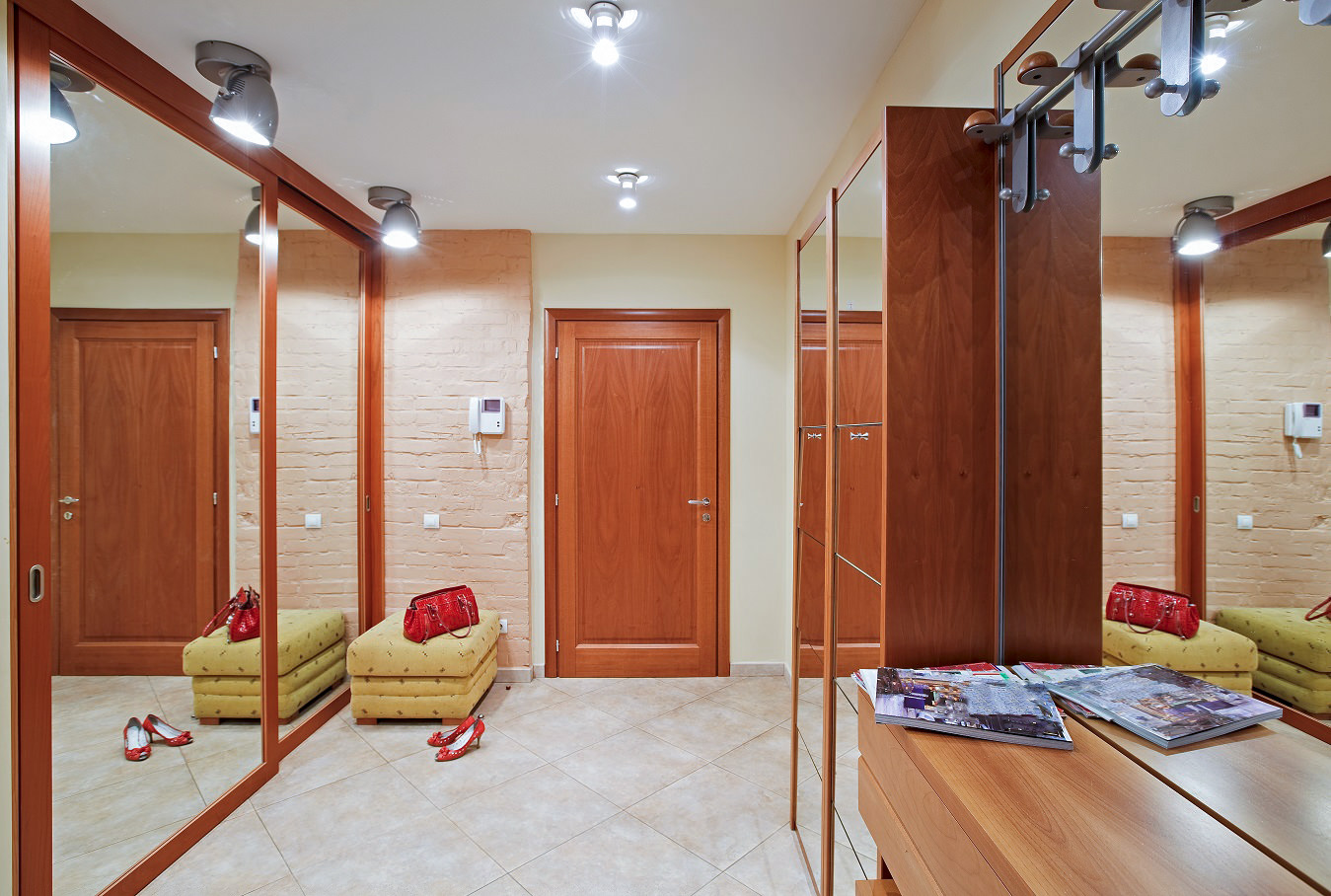 Tip. When choosing a door leaf, pay attention to the mirror and glass inserts, which significantly change the appearance of the entire hallway.If there are mirrors in the interior doors, then you can do without the functional attribute of any hallway.