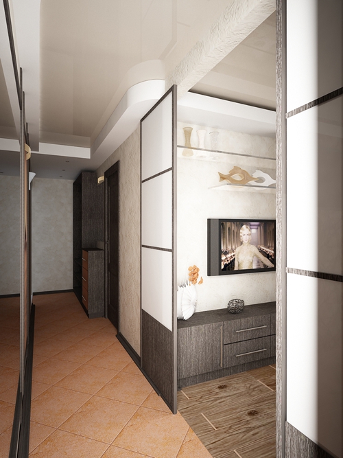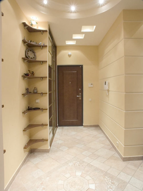 It is desirable to strengthen the ceilings with a frame, arch or partial partitions. Free space should be reasonably zoned. But do not forget that the main functionality of the hallway is meeting guests, as well as storing seasonal clothes and shoes.
