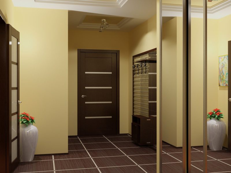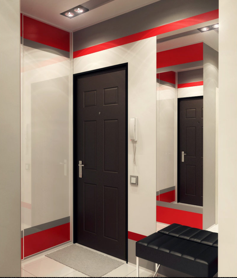 Important! If you want to expand the corridor space without redevelopment, get rid of bulky interior doors! They will be replaced by glass doors or mirror inserts.