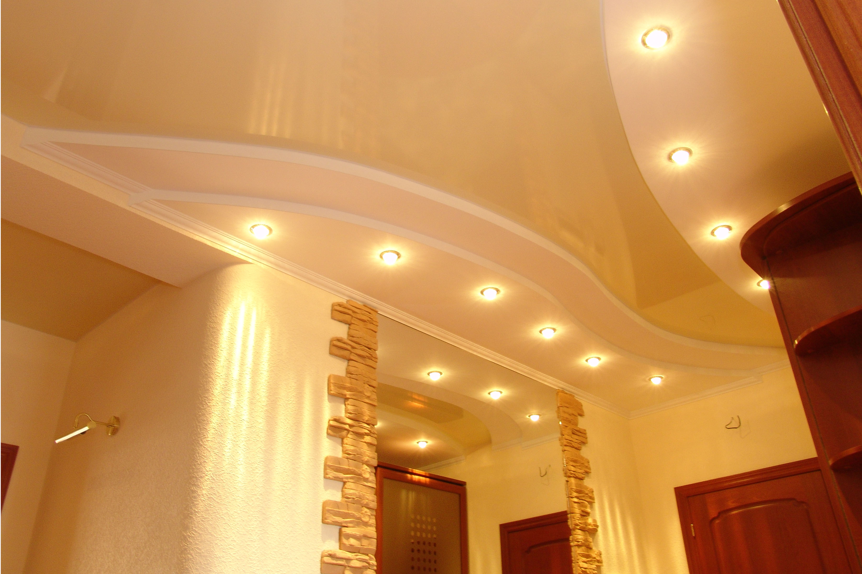 For a compact hallway, a simple one-level ceiling is ideal