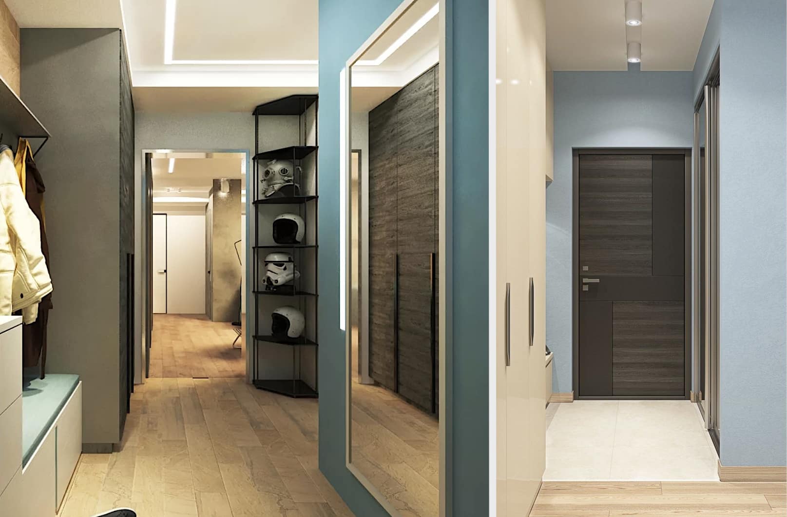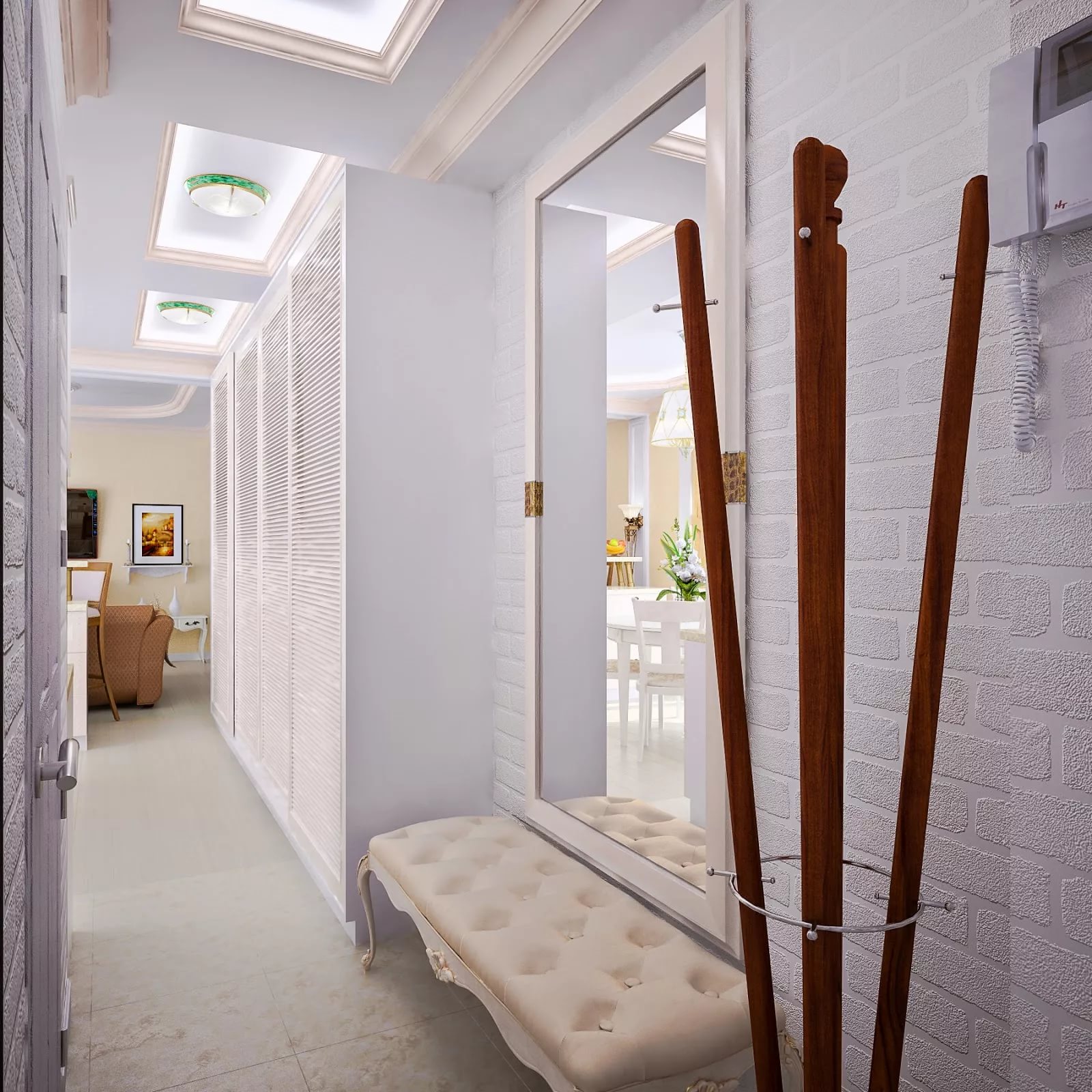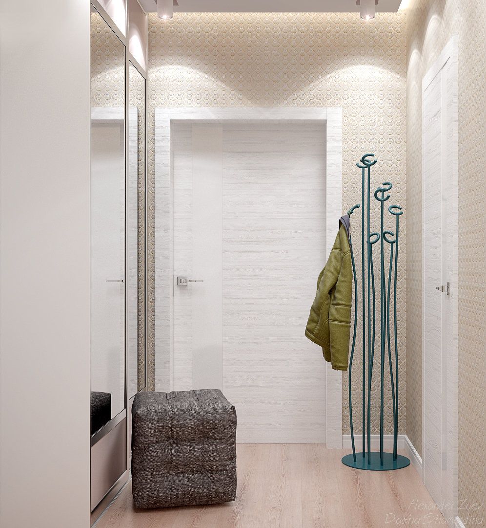 If the corridor in the apartment is too narrow, then in the design project, it is better to replace the cabinet with a floor or wall hanger.