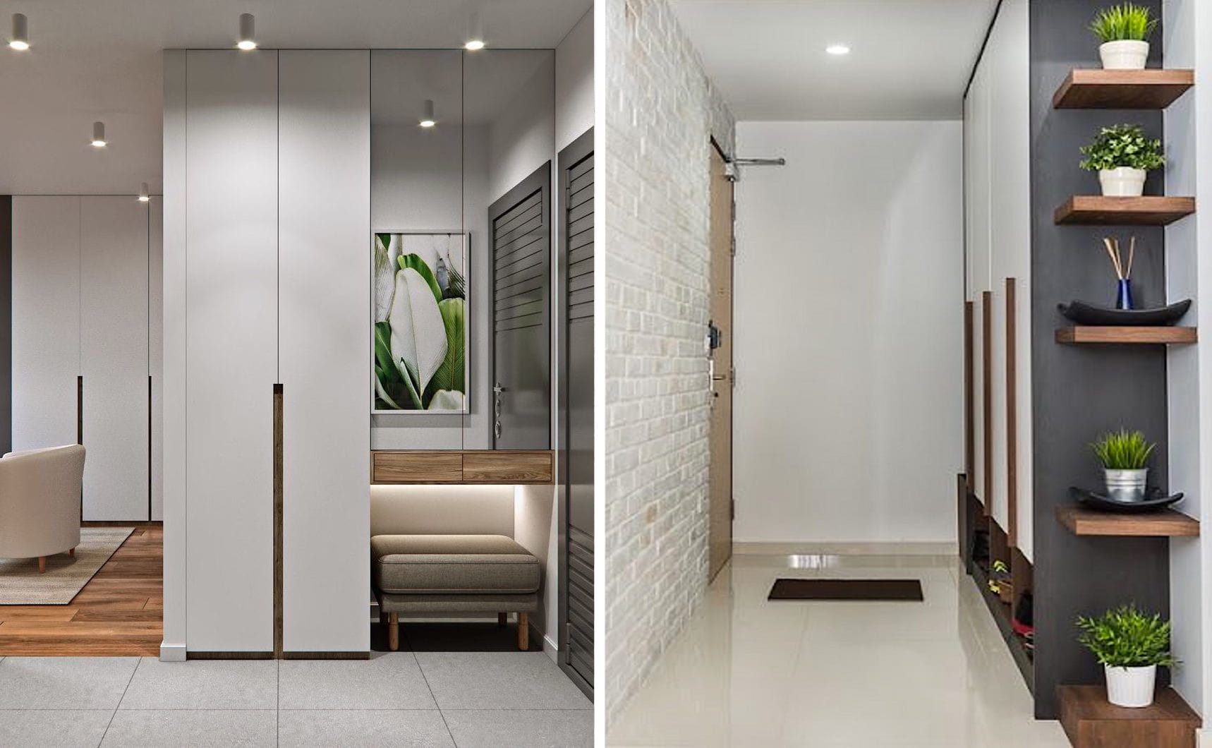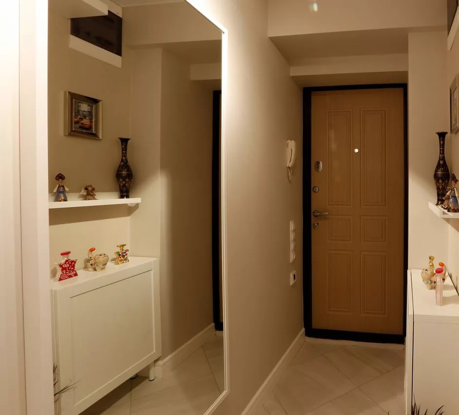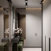 Studio apartments are distinguished by their compactness, which means that the entrance hall should be as functional as possible. High cabinets with convenient storage compartments will be especially relevant here. If it is possible to equip a small dressing room in a niche, then let this place become a real gathering room with good light, a mirror and shelves for cosmetics and all the necessary elements of everyday wardrobe.