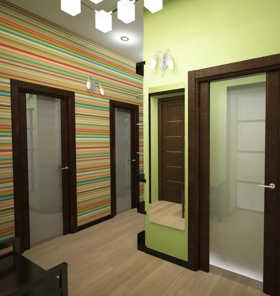 The choice of colors in the corridor depends on its size. For example, in a narrow and small hallway, it is necessary to use only light colors and pastel shades. Ideal beige, milky, gray, light brown, blue, light yellow. Dark tones are acceptable in spacious rooms, but subject to high-quality lighting.