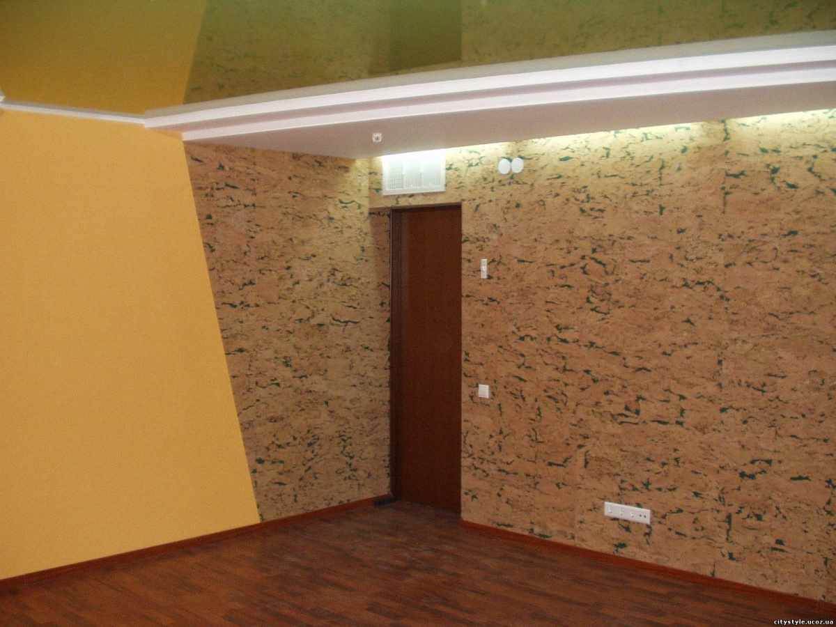 In many ways resembles cork wallpaper. It is based on cork chips covered with cork veneers. The price of coverage per square meter can reach up to 1200 rubles. At a price below 550 rubles, a roll cork cannot be found. When designing, it will be necessary to purchase special glue (wallpaper simply does not hold the weight). It is important to know that glue is also expensive - in the region of 2000 rubles per package. And the procedure itself is better to entrust to specialists. The fact is that after attaching a piece of cork to the wall, it is fastened literally tightly. Accordingly, to correct even small flaws and the curvature will not work. |
