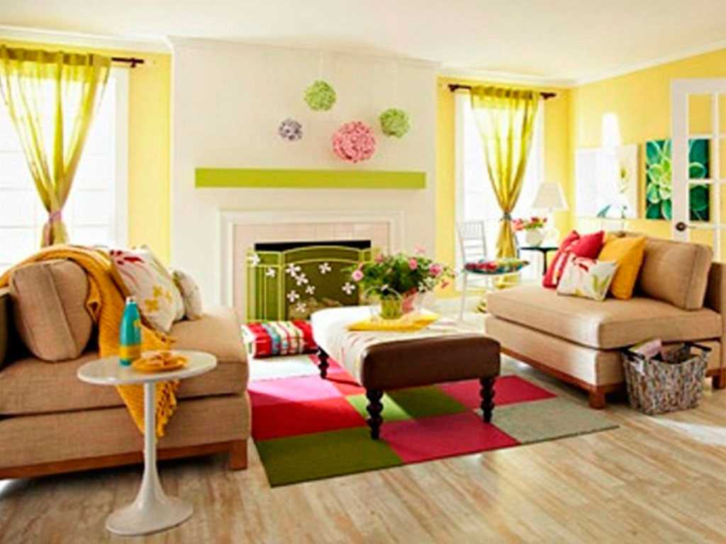 A life-affirming color is associated with fireworks, a sunny beach. It stimulates the brain, gives a sense of celebration. Light, blinding tone will create a comfortable atmosphere, bring a sense of vigor to the room.