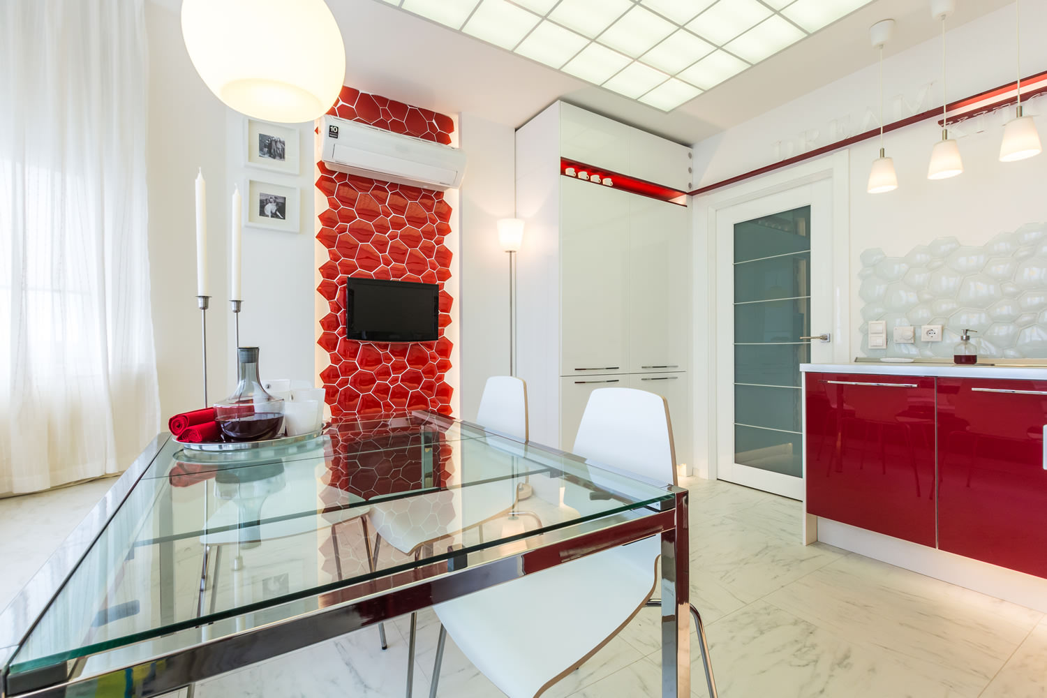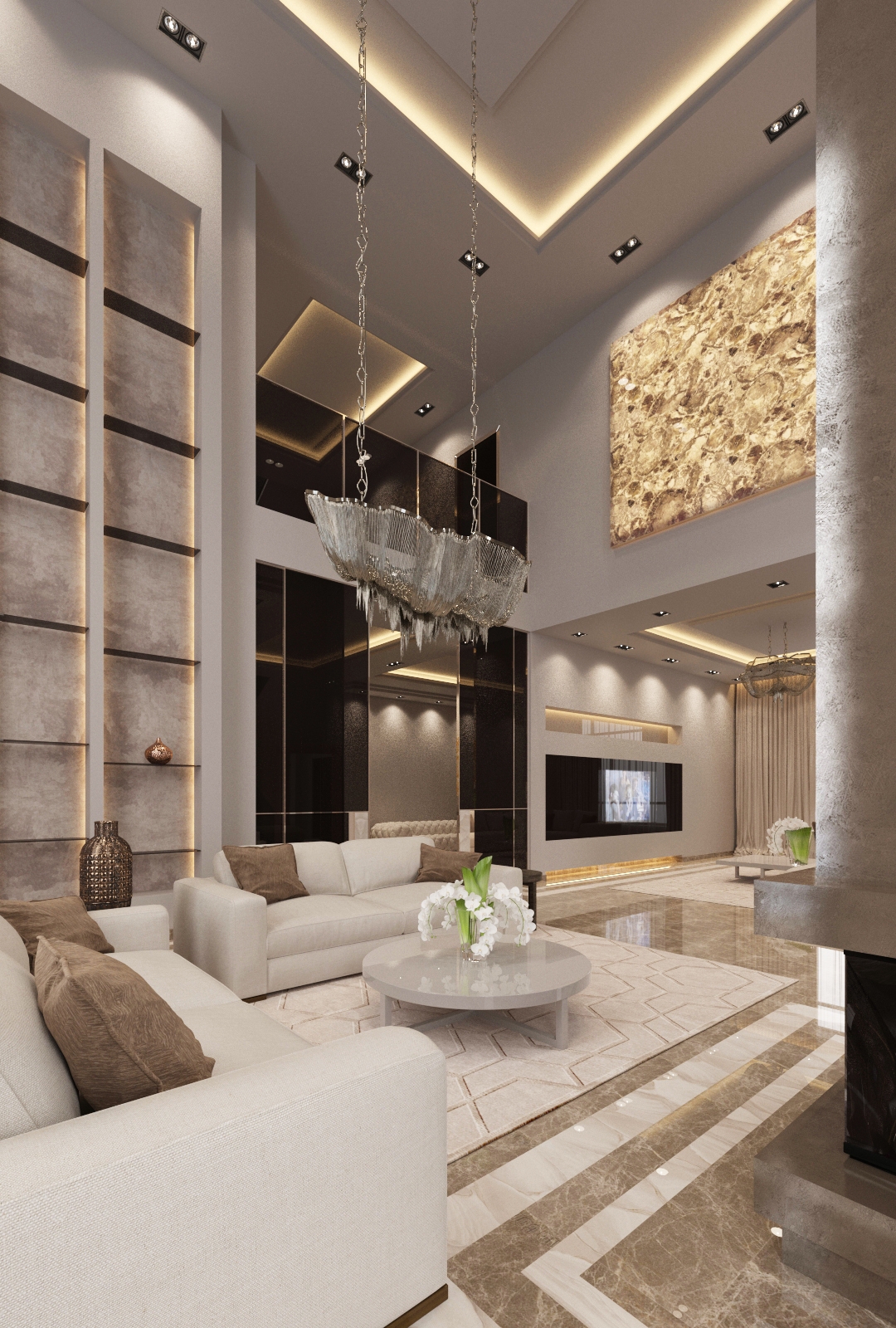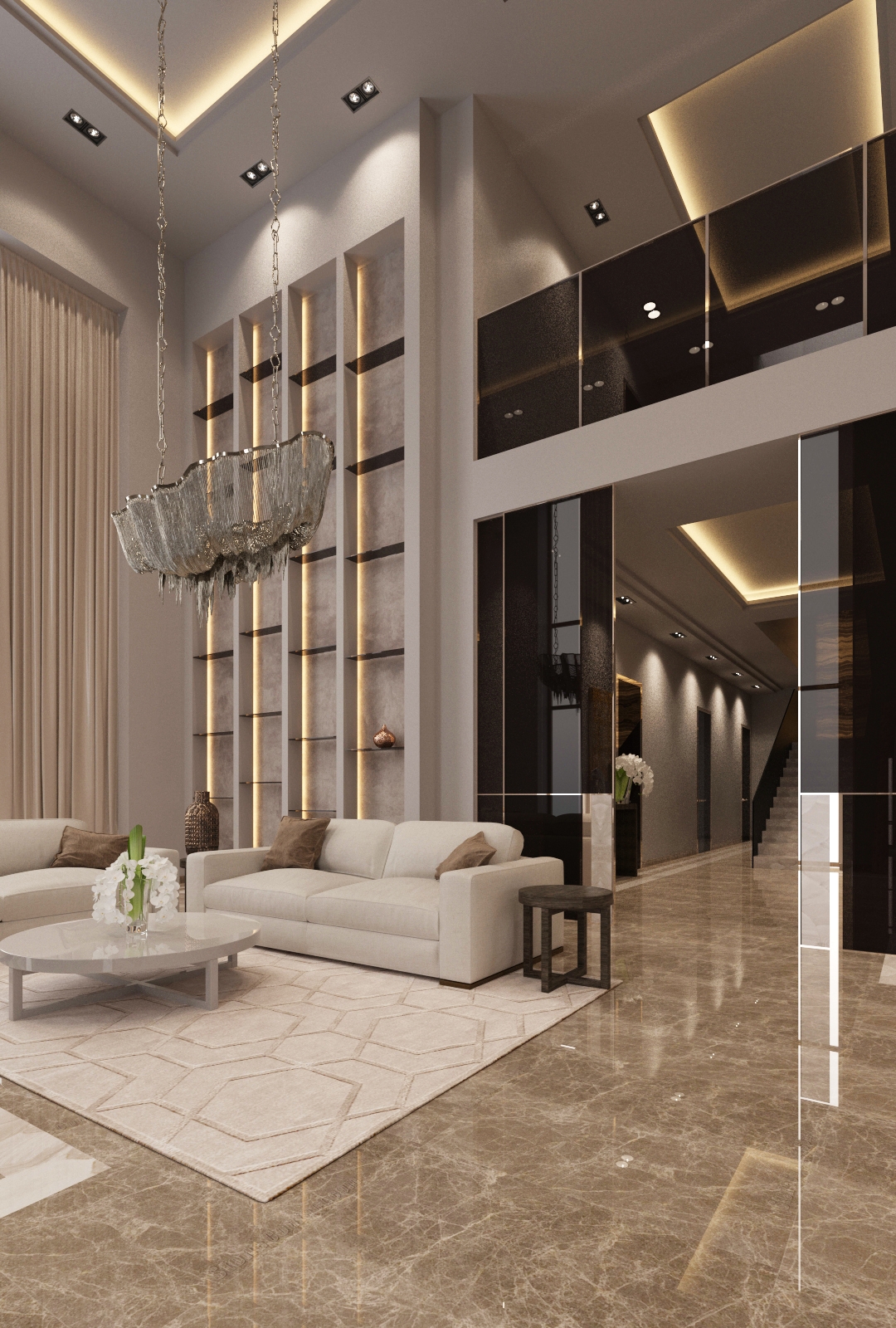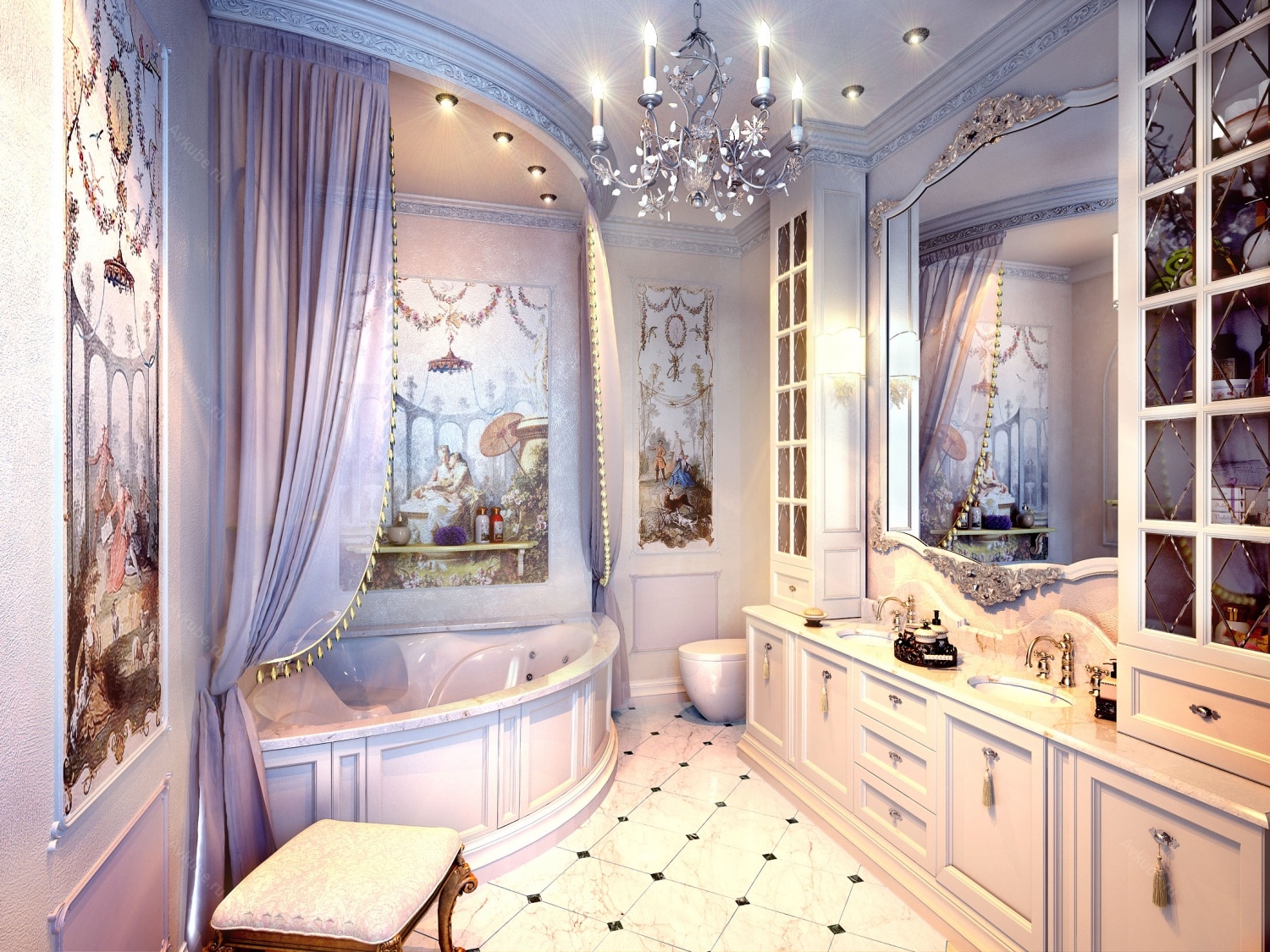 All listed materials and details should be presented in a room with a glamorous stylization.