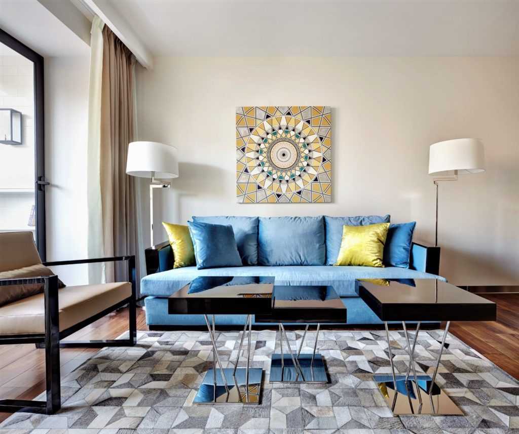 Blue color in the interior of the living room would be a great option