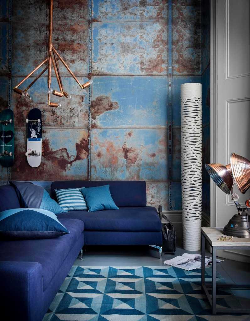You can use the “gradient” technique, creating the interior of the room. Choose a primary color, it can be blue or blue (it is desirable that it is clean), and, starting from it, make soft transitions. The “wave” should be vertical (start from the ceiling, changing as it gets to the floor, or vice versa), or horizontal (from wall to wall). You can make it rolling diagonally. The main thing is that soft transitions form. Everything should be involved: furniture, walls, floor, ceiling, accessories. Nothing should fall out of the given style.