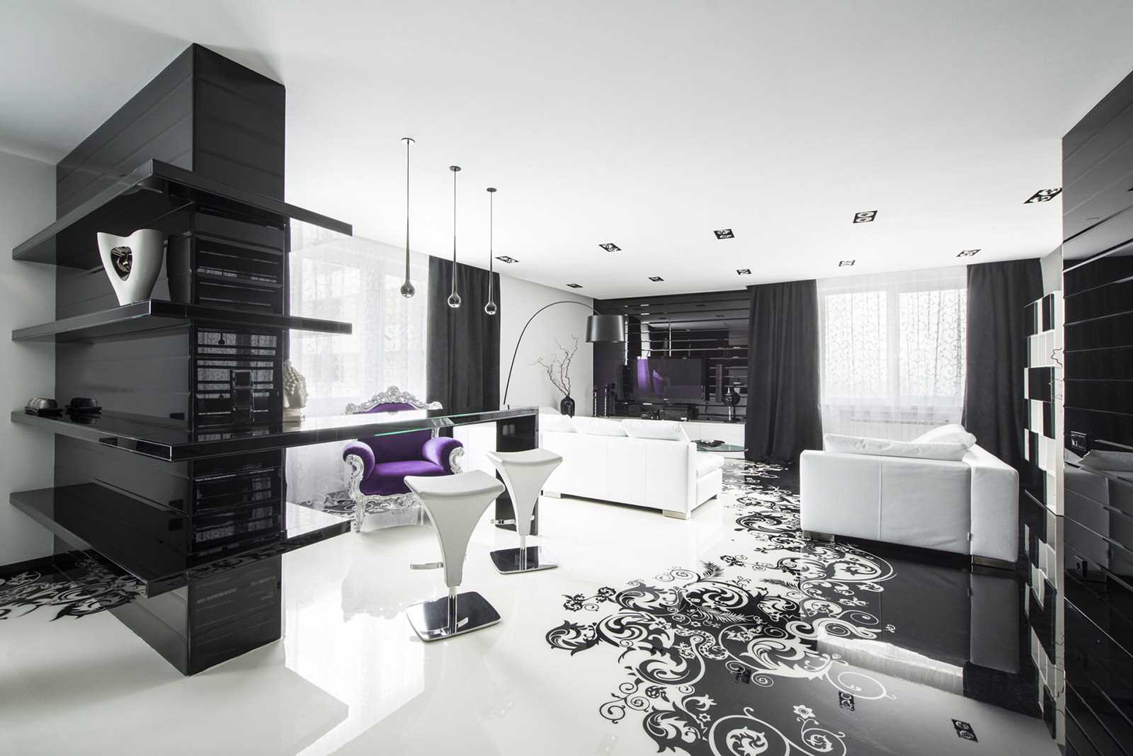 - Opposite surfaces are attracted, giving a different sensation. Such tinting can be suitable for any room, depending on what result you want to get in the end. For a high apartment, a dark floor is ideal, in tone with the ceiling, cream walls. The low rooms will be raised by a white glossy ceiling and a light floor with rich lateral planes.