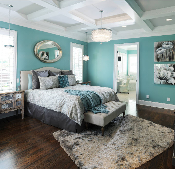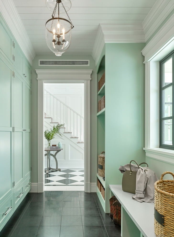 The gray-mint combination harmoniously looks both in modern styles and traditional interiors