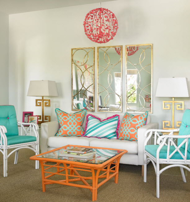 But we should not forget that a combination of such colorful tones in clothes will be appropriate at a party or a walk. But in the office such a colorful outfit looks ridiculous. In the interior design, such color combinations need to be implemented very carefully, correctly placing bright accents on a pastel background.