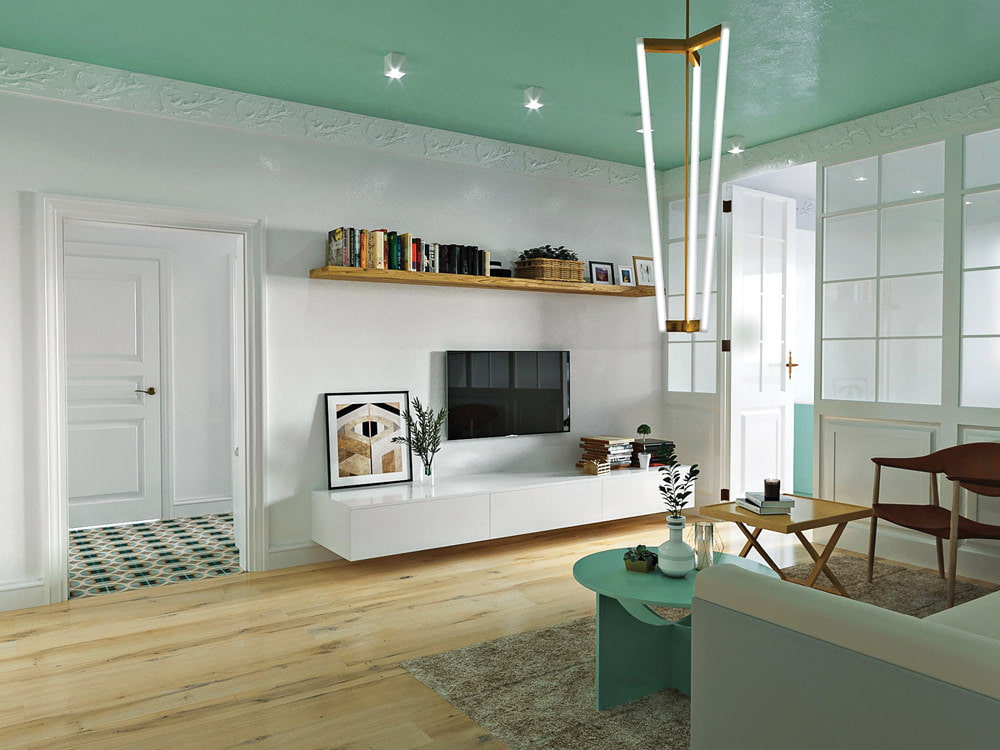 The combination of white + mint will create the impression of spaciousness even in a small room