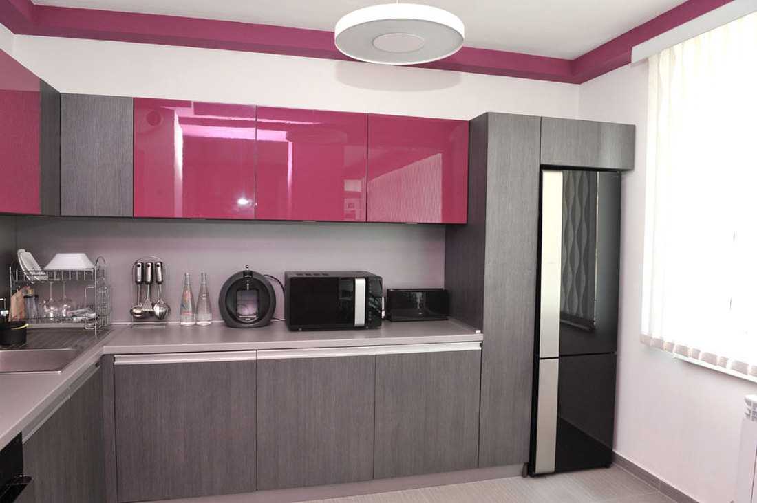 The gray color in the interior of the kitchen has a practical side. It is less easily soiled, does not get dirty so quickly, minor scratches are not so visible on it.