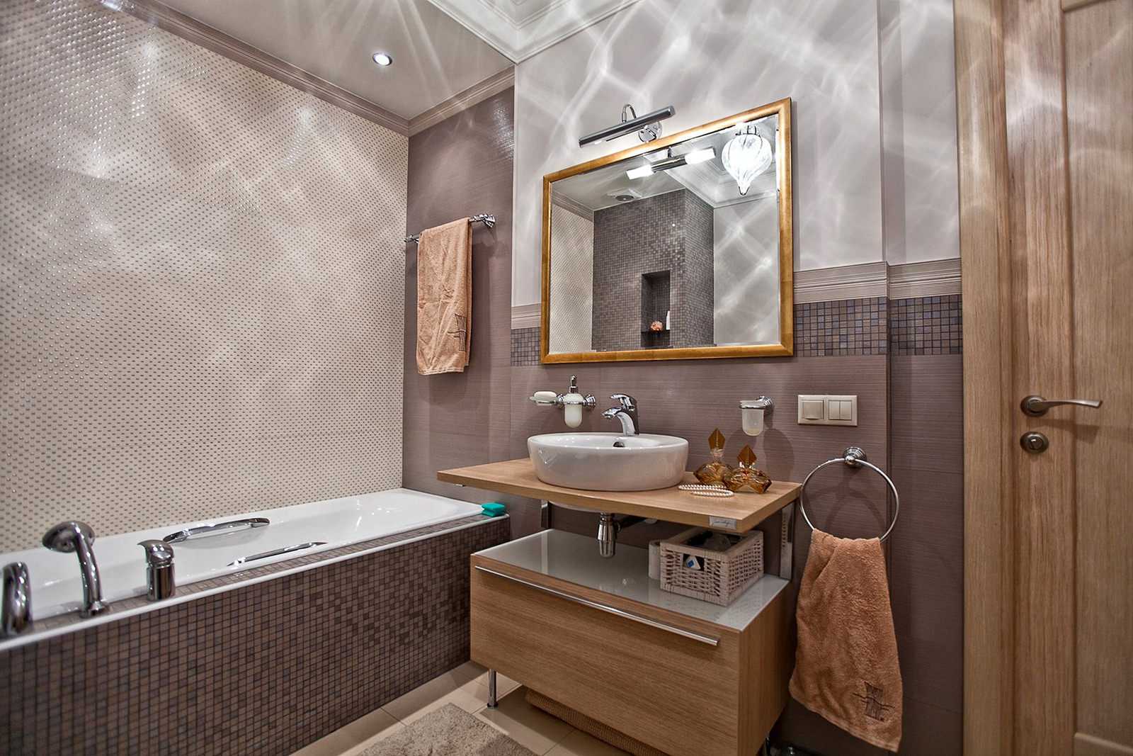 If you want a sophisticated atmosphere, choose a combination with black and white details. This composition will turn the bathroom into an elite spa, and give the climate a calm. A calm foundation will not allow black and white to make it too official.