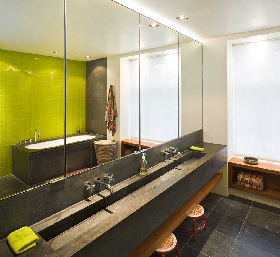 Relaxation starts with a bath. Gray, relaxing on the nervous system, is well suited to the climate of the bathroom. Details of green, turquoise, blue or blue form a fresh atmosphere, and will help you immerse yourself in a state of relaxation.