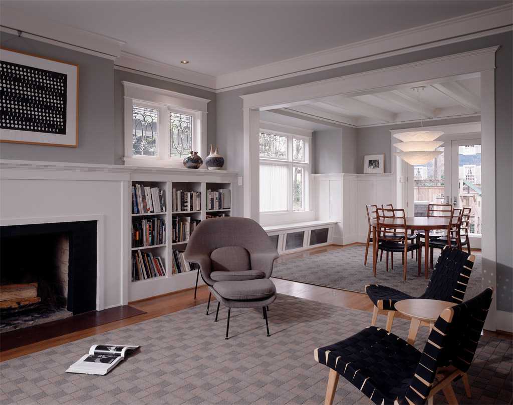 The gray color in the interior of any room looks advantageously paired with white. This combination forms a clear and calm aura, visually expands the space, and has a tendency to relax and calm. This decision is characteristic of the Scandinavian current.