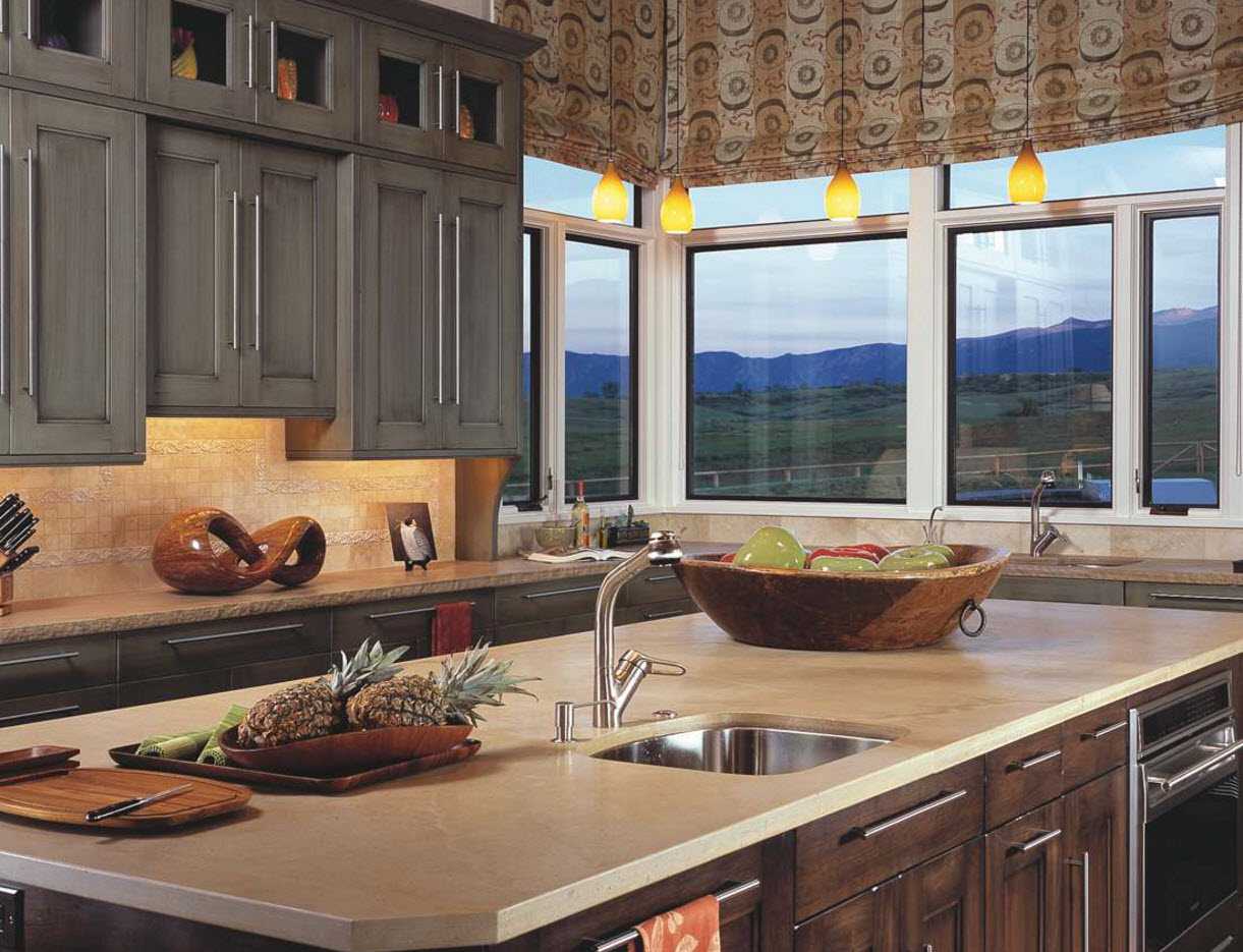 A good combination is created by natural stone or ceramics together with gray in the interior. The sink countertop made of this material in the same gamut will give a luxurious shine to the decor.