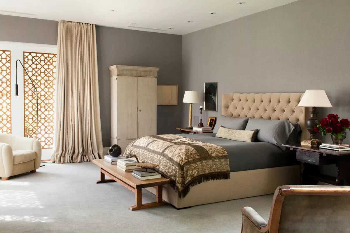 The beige color in the bedroom interior will create a pleasant and warm atmosphere.