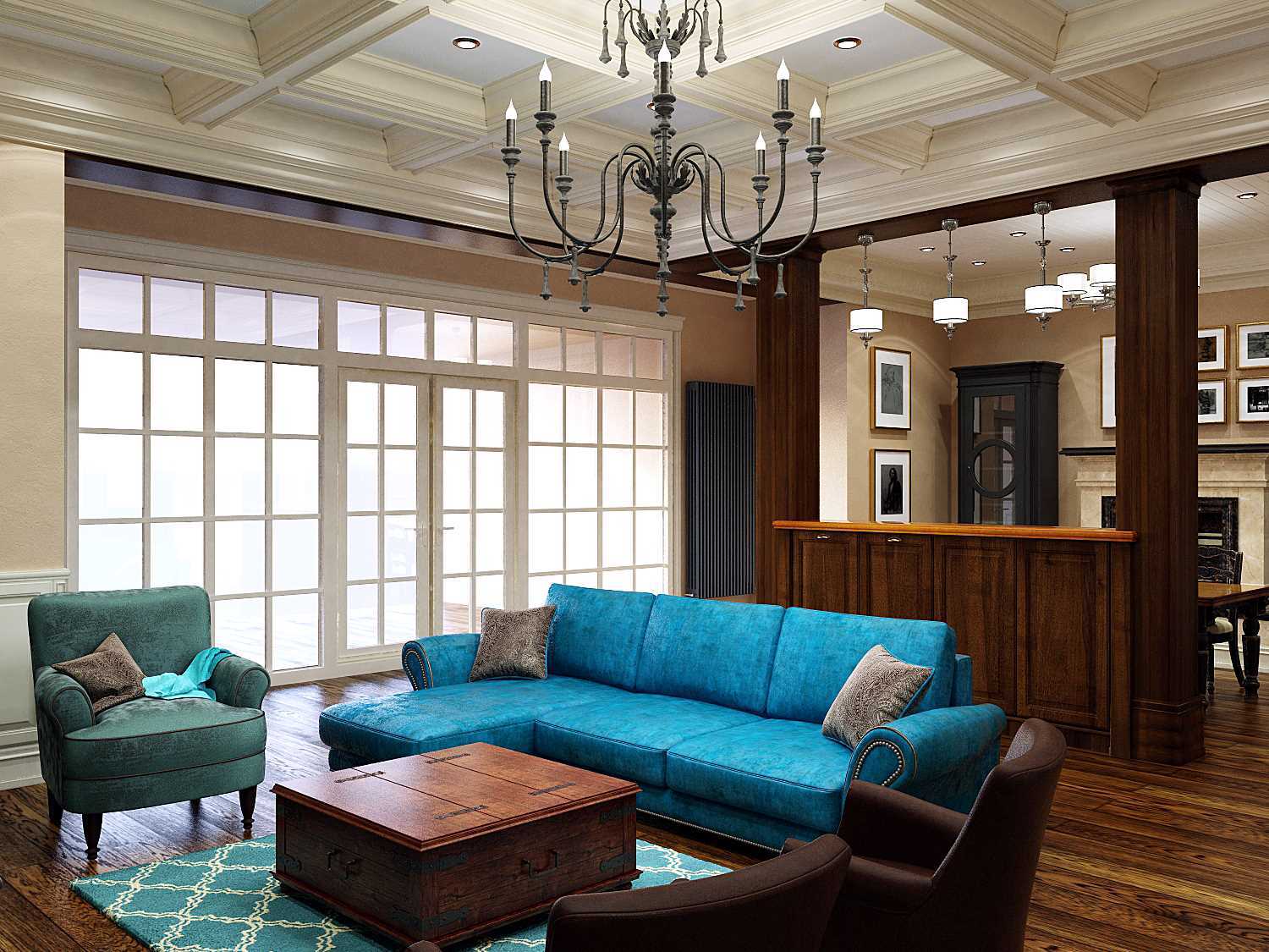 A blue sofa will stand out in the interior