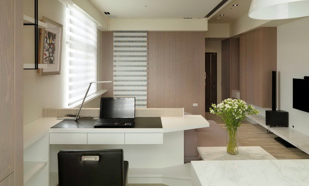 The laconic design of the studio apartment will come out using the Scandinavian style. This interior solution is suitable for middle-aged people. This is a strict, restrained style. It is characterized by an abundance of white in the finish. White make the ceiling, decorative ledge, sometimes the walls. So that the ceiling does not merge with the walls, they can be decorated with a small ornament. The plumbing unit can be decorated more vividly using azure, green colors.