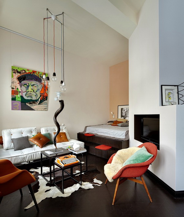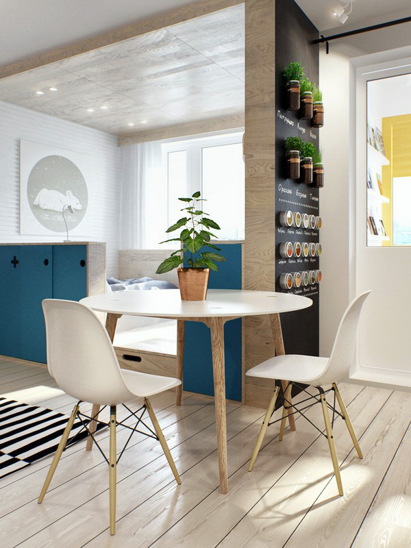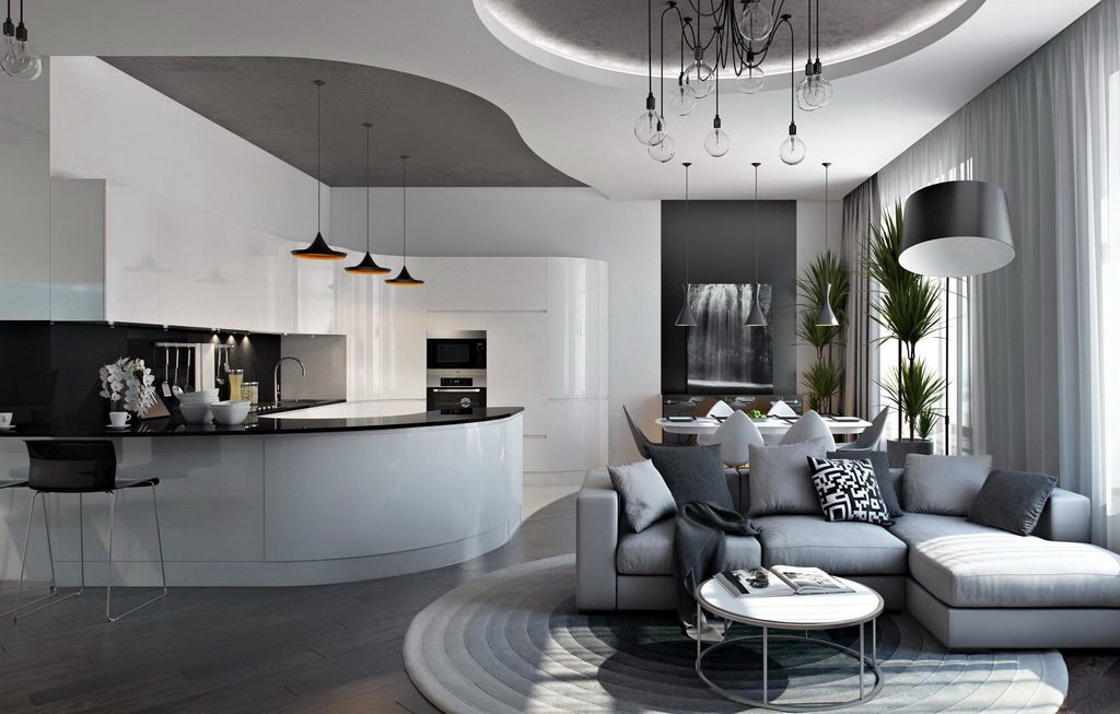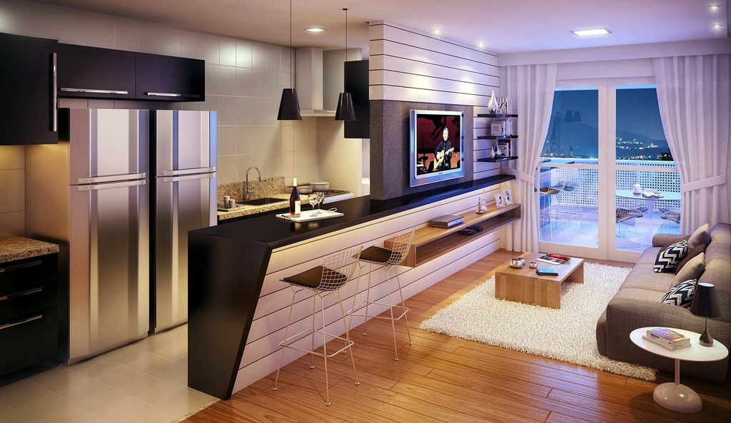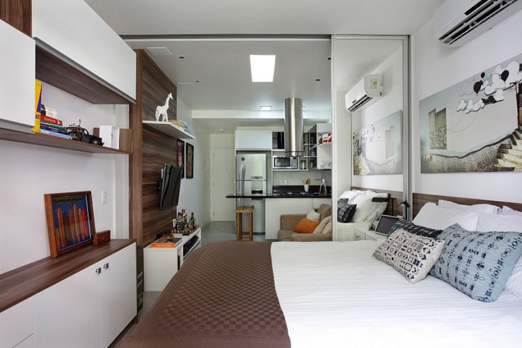 The open plan is ideal for single people, a young family without children. In the studio apartment it is enough to equip only the kitchen, bedroom for a comfortable stay. The number, type of zones will depend only on the characteristics of the hosts' lifestyle.