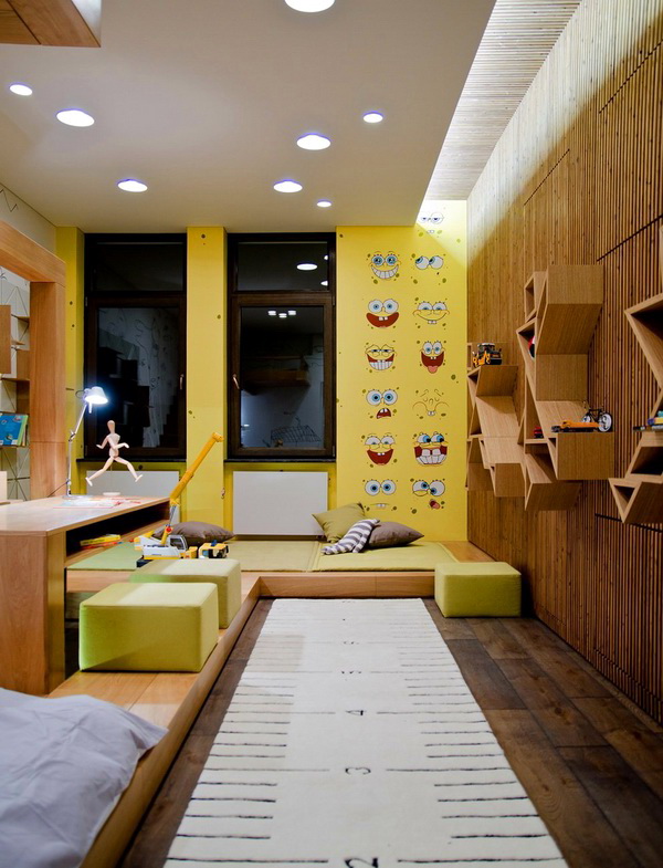 It is convenient to separate the sleeping area at bedtime by a screen, which is easy to remove during the day