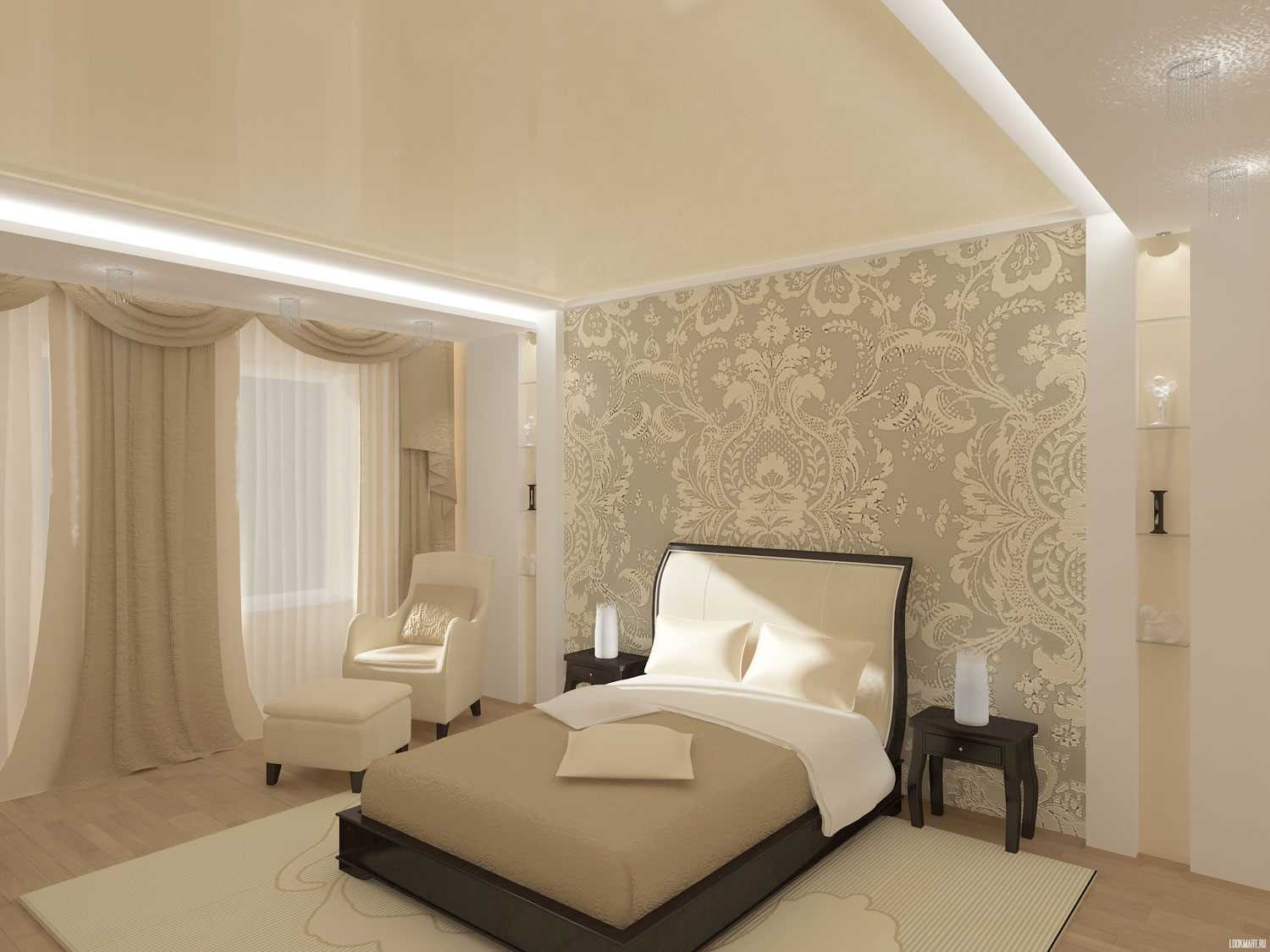 Whatever bedroom interior you choose, it is very important to choose the right color scheme. Bright, saturated tones are unacceptable here, because they tire very quickly. Given that the bedroom is primarily a place to relax, it is preferable to choose white and a light pastel palette as the main one. Furniture, a bed, walls, curtains, as well as accessories designed in this gamut, will help create an atmosphere in your relaxation room that offers relaxation and peace.