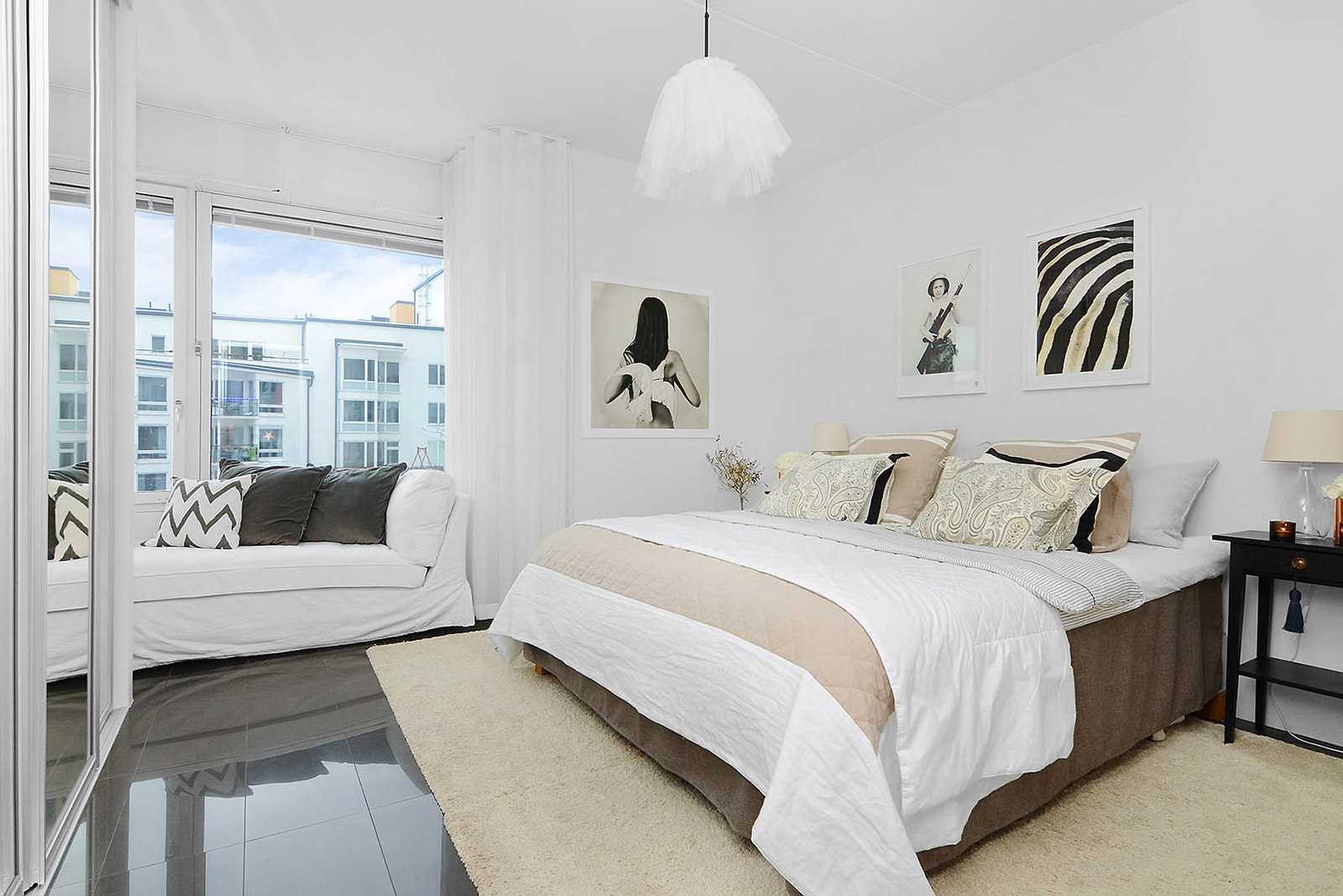 Needless to say, the bed for the Scandinavian room should also be white.